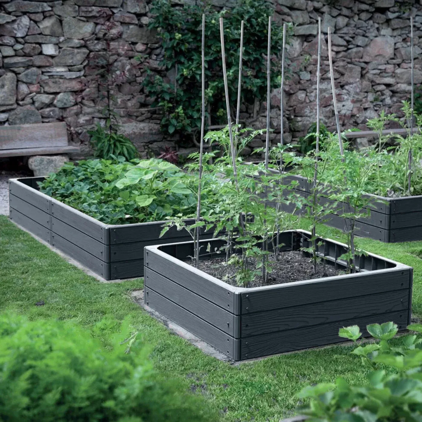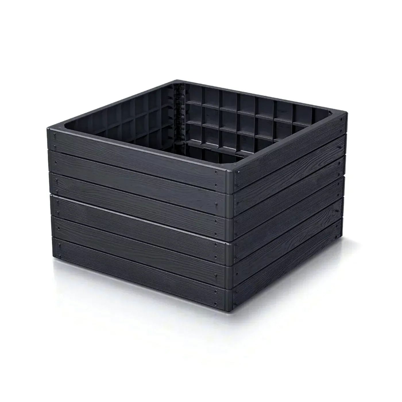 Černý vyvýšený stohovatelný záhon je elegantní a ekologické řešení pro pěstování zeleniny, bylinek či květin. Vyrobený z recyklovaného kompozitního materiálu, který imituje dřevo, nabízí odolnost vůči povětrnostním vlivům bez nutnosti údržby. Ideální pro zahrady, terasy i balkony.