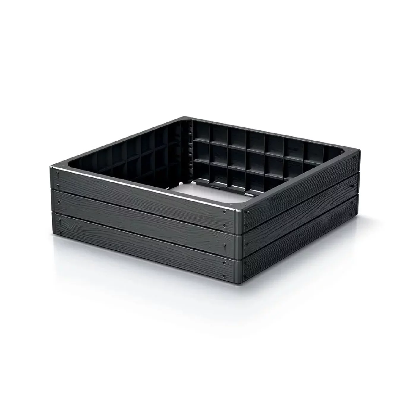Černý vyvýšený stohovatelný záhon GH14 - 75,6 x 75,6 x 25 cm