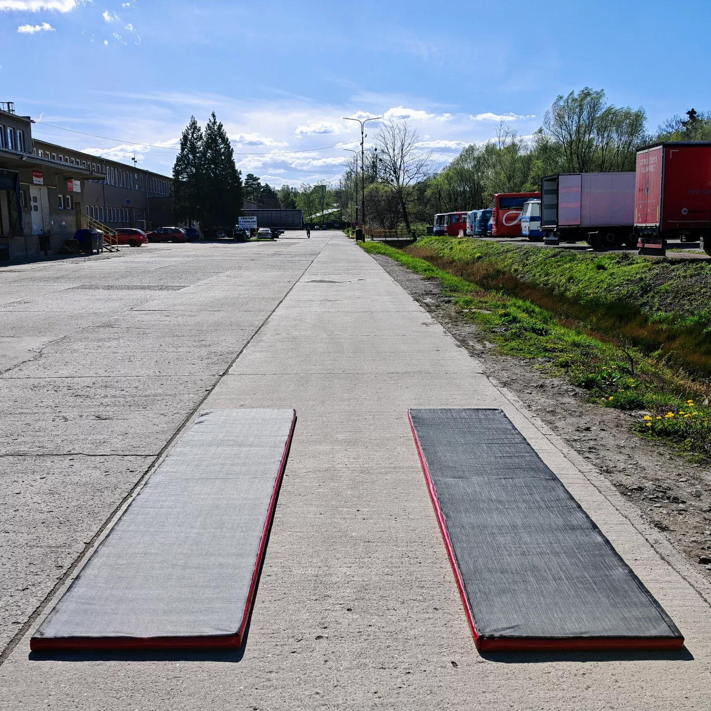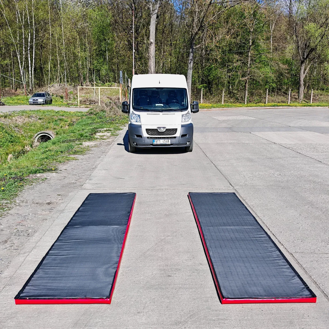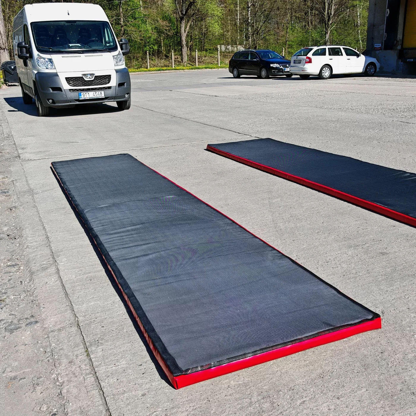 - Položte dvě rohože vedle sebe s mezerou cca 104 cm – pro většinu typů vozidel