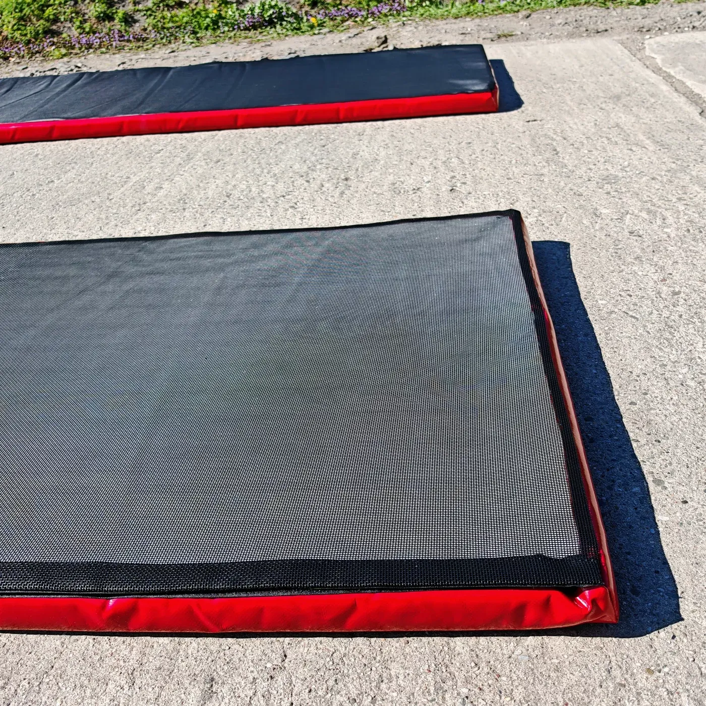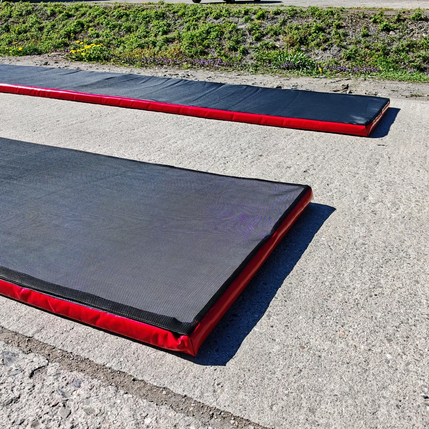 Rohož je lehká a snadno přenosná – s hmotností v suchém stavu cca 7,25 kg ji lze rychle srolovat a přemístit. Pokud by na povrchu jako je asfalt nebo beton docházelo k posunu rohože při přejezdu, doporučujeme spodní stranu ošetřit protiskluzovým sprejem, který vytvoří ochranný povlak a výrazně zvýší přilnavost k podkladu.