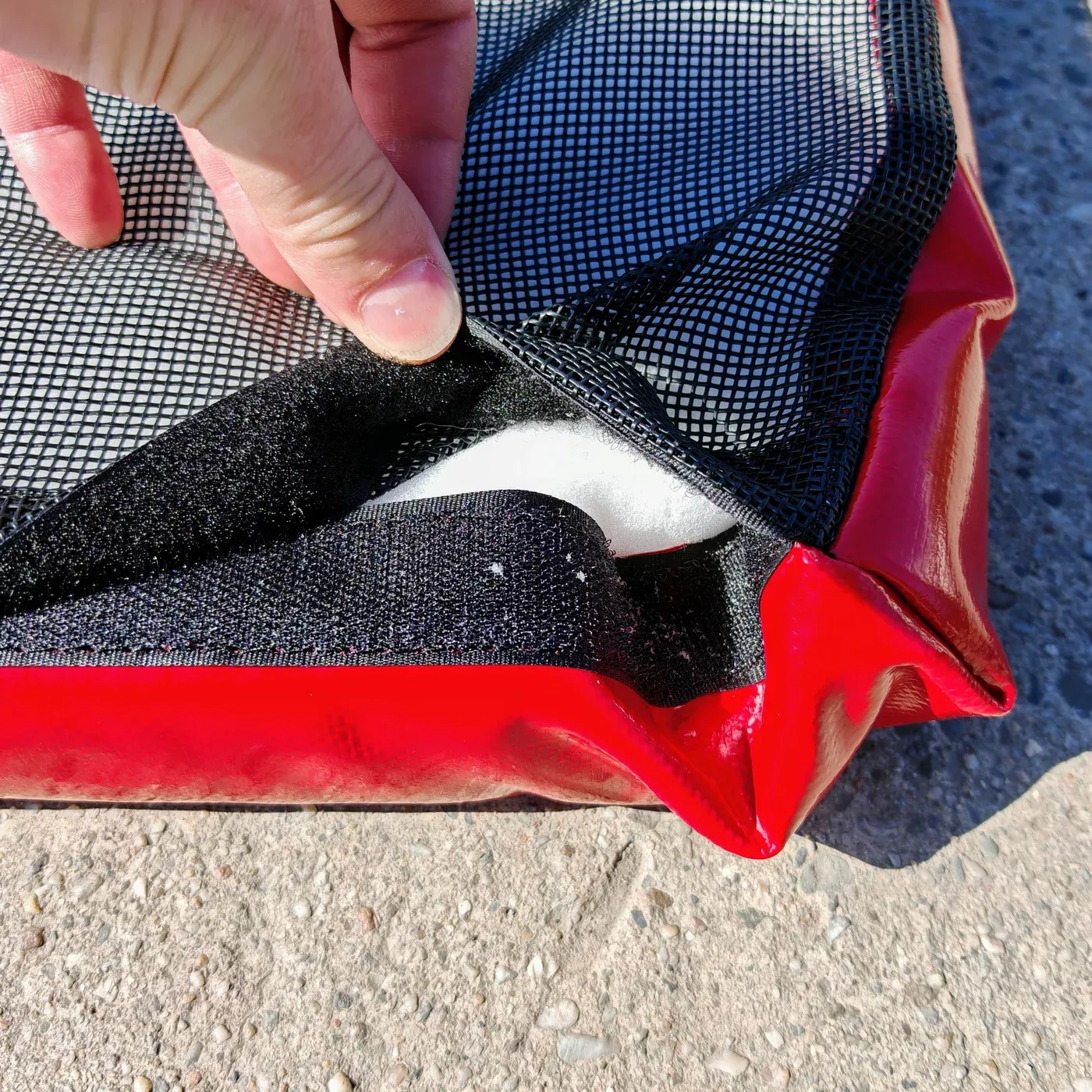 - barva: červená textilie, černá síťka, bílý molitan
