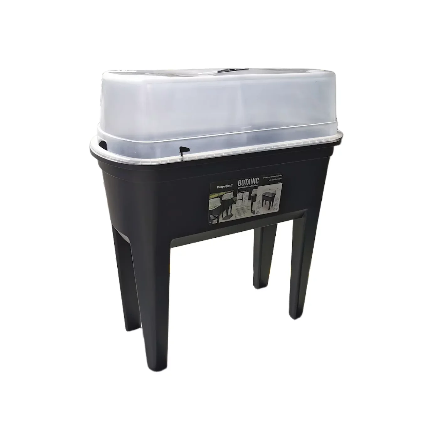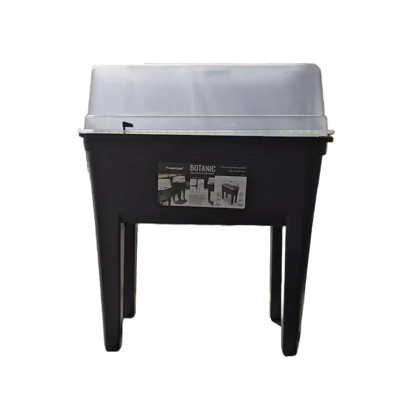 Černý plastový zahradní sadbovač GH76 je praktický a elegantní miniskleník vhodný pro předpěstování sazenic, bylinek nebo drobné zeleniny. Kombinuje plastový truhlík s průhledným víkem, které udržuje stabilní mikroklima a podporuje klíčení rostlin. Díky svému kompaktnímu tvaru je ideální na parapety, balkony i zahradní stoly.