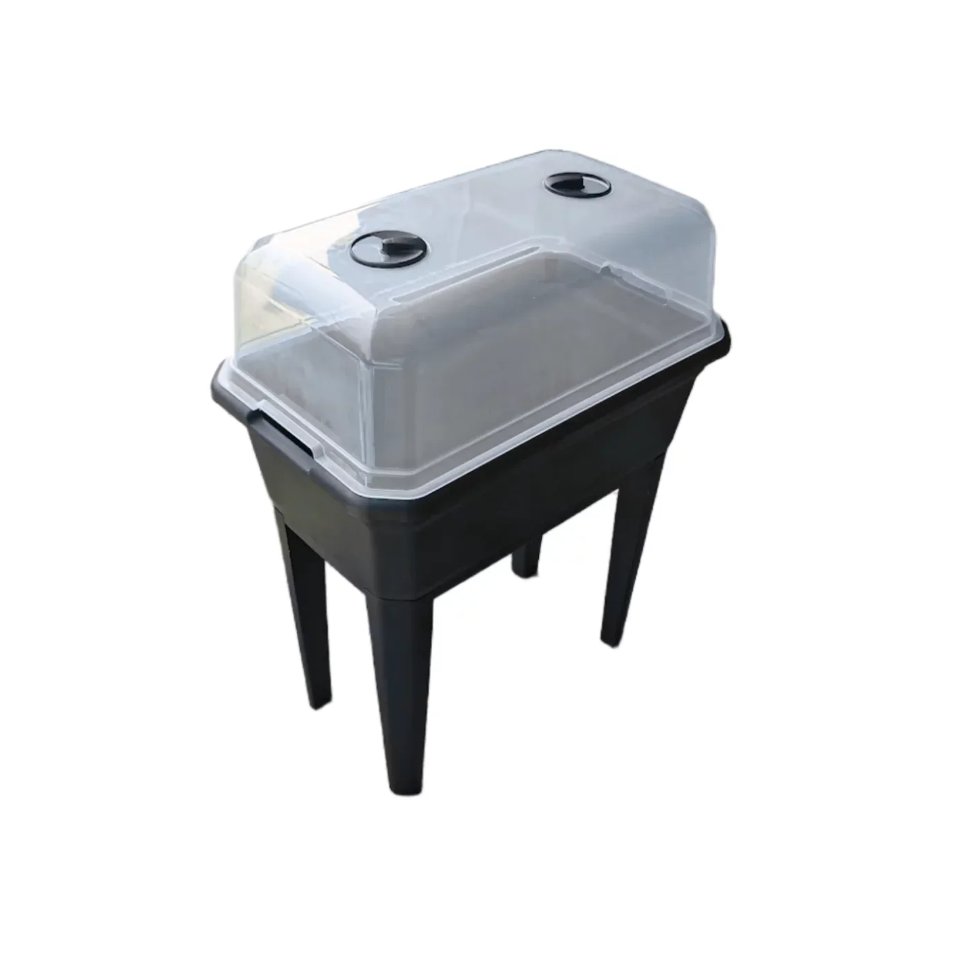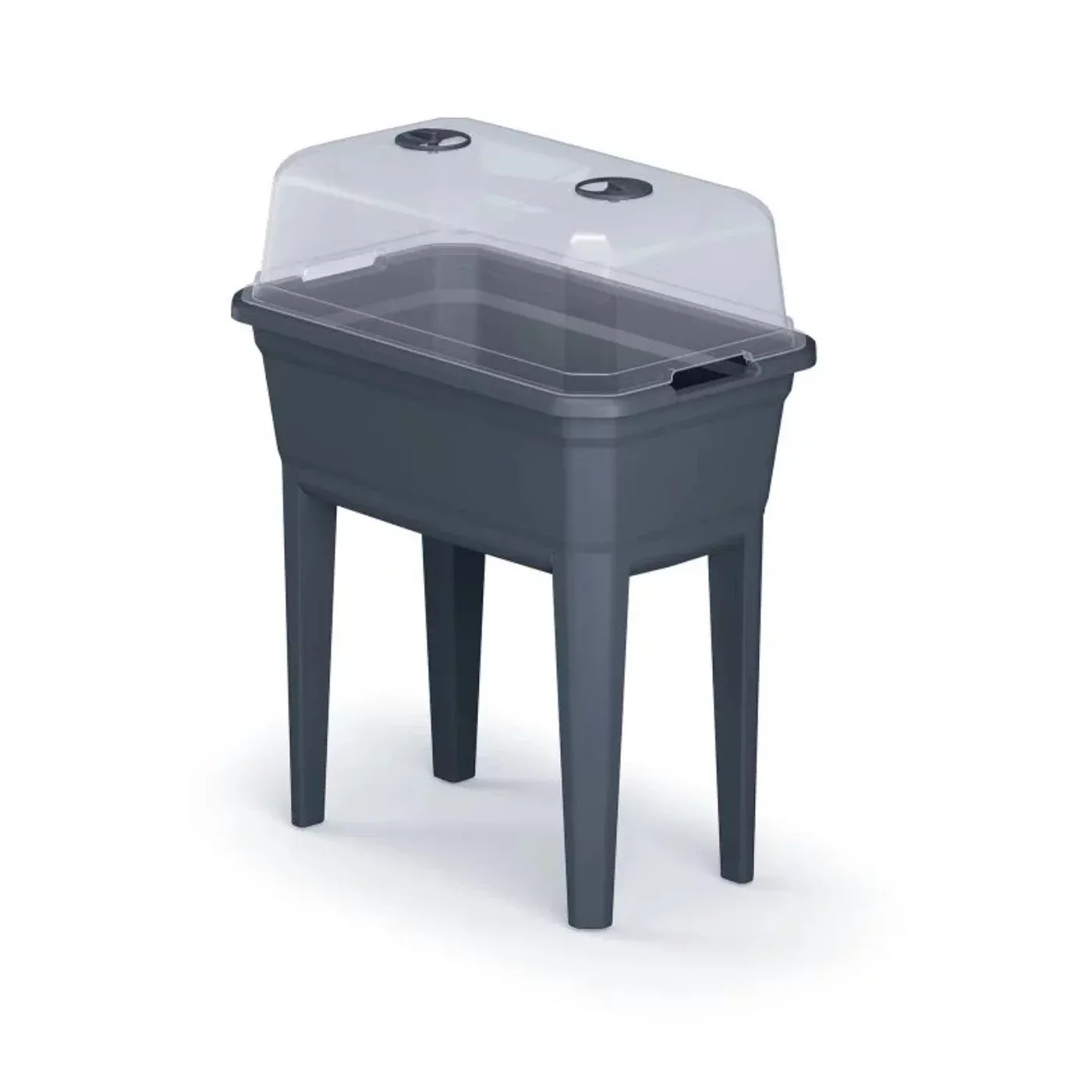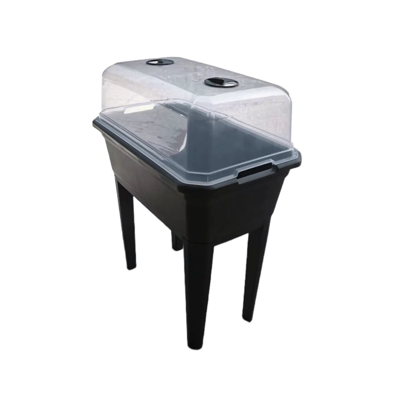 Černý plastový zahradní sadbovač GH76 je praktický a elegantní miniskleník vhodný pro předpěstování sazenic, bylinek nebo drobné zeleniny. Kombinuje plastový truhlík s průhledným víkem, které udržuje stabilní mikroklima a podporuje klíčení rostlin. Díky svému kompaktnímu tvaru je ideální na parapety, balkony i zahradní stoly.