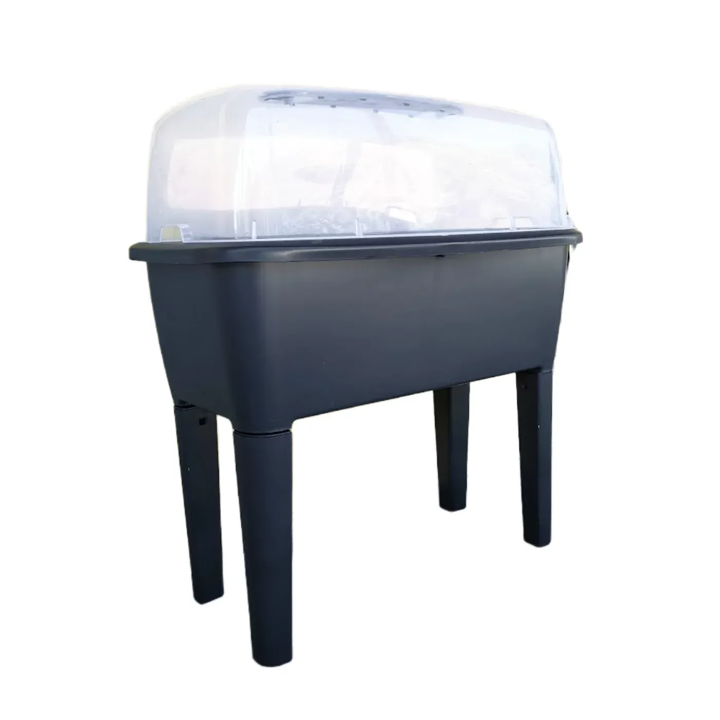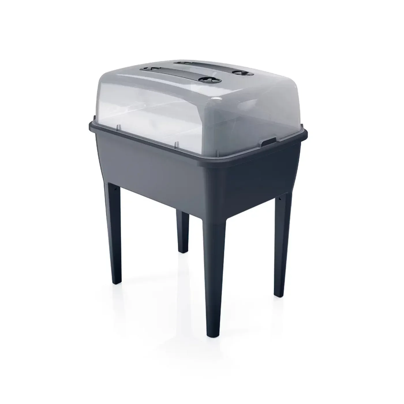 Černý plastový zahradní sadbovač je praktický a elegantní miniskleník vhodný pro předpěstování sazenic, bylinek nebo drobné zeleniny. Kombinuje plastový truhlík s průhledným víkem, které udržuje stabilní mikroklima a podporuje klíčení rostlin. Díky svému kompaktnímu tvaru je ideální na parapety, balkony i zahradní stoly.