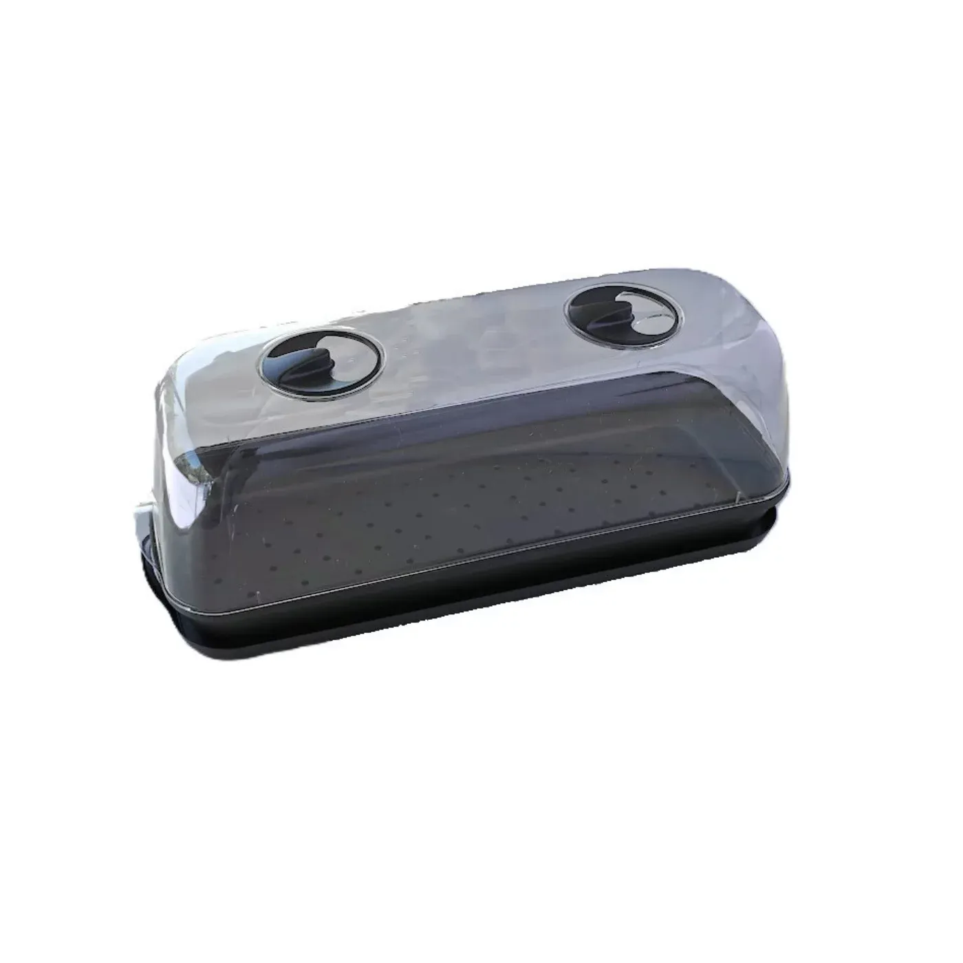 Černý plastový zahradní sadbovač je praktický a elegantní miniskleník vhodný pro předpěstování sazenic, bylinek nebo drobné zeleniny. Kombinuje plastový truhlík s průhledným víkem, které udržuje stabilní mikroklima a podporuje klíčení rostlin. Díky svému kompaktnímu tvaru je ideální na parapety, balkony i zahradní stoly.