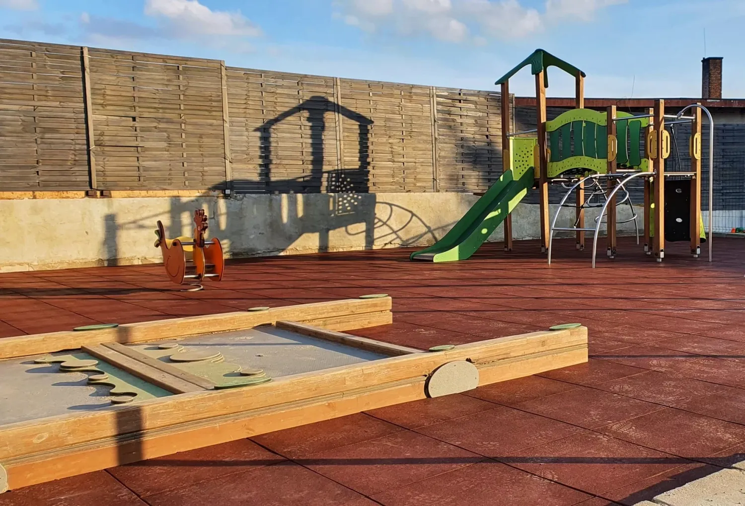 Gumová dlažba FLOMA ProF je ideální volbou, pokud potřebujete vytvořit bezpečný povrch pro dětská hřiště či venkovní posilovny, který odolává vnějším vlivům a mechanickému poškození, přičemž zůstává měkký a bezpečný při pádu.