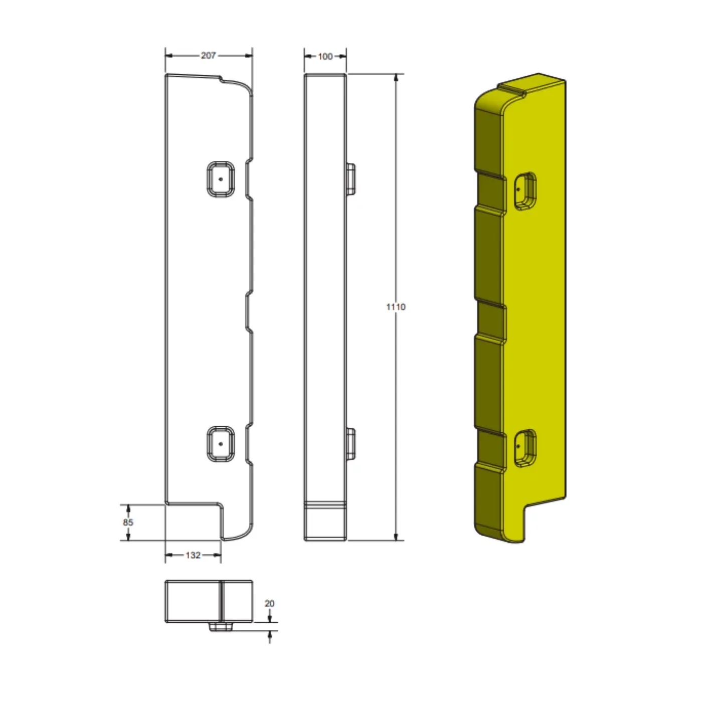 Nástavec se zacvakne mezi dvě poloviny chrániče sloupu díky systému kolíků a otvorů. Jedná se o ideální způsob ochrany obdélníkových sloupů. Odolný vůči většině chemických látek