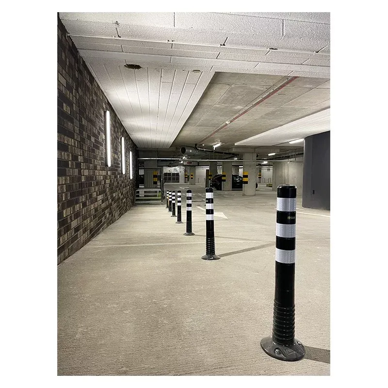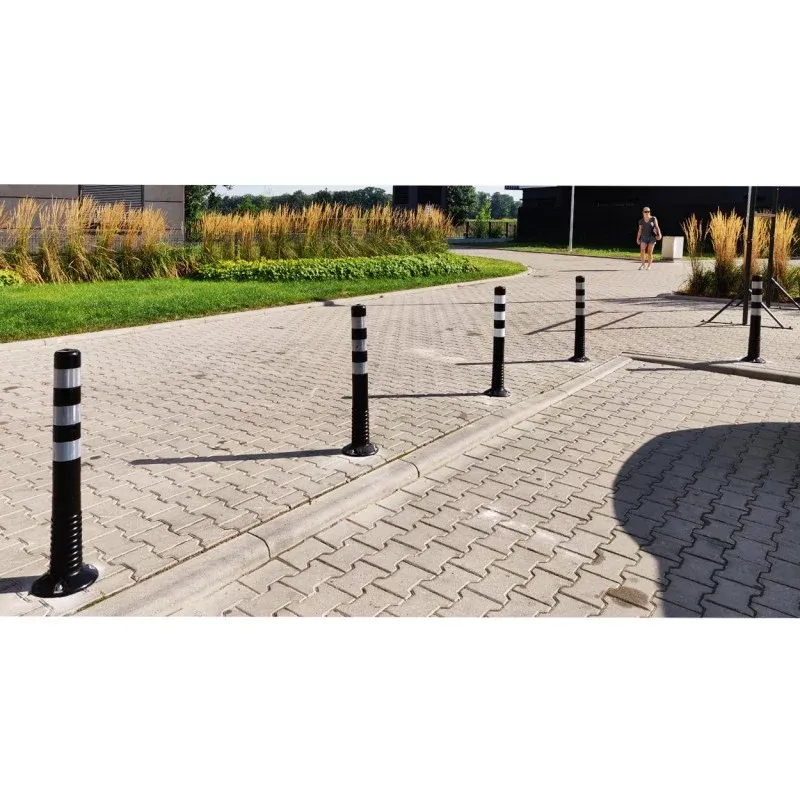 Černý plastový parkovací ochranný sloupek z elastického plastu slouží k oddělení a ochraně dopravních tras, jako jsou parkovací místa, cyklostezky, pěší zóny či vjezdy. Díky pružnému materiálu se při nárazu deformuje a po odeznění tlaku se vrací do původního tvaru. Sloupek je vybaven reflexními pásy pro vyšší viditelnost za zhoršených světelných podmínek.