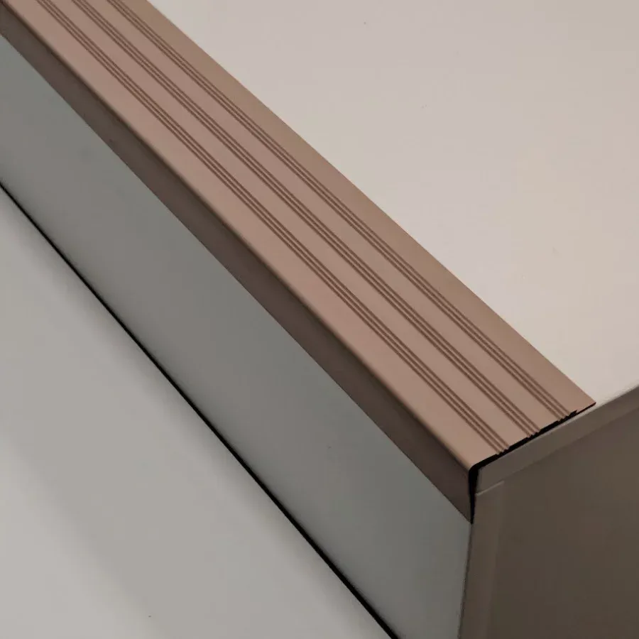 Schodová hrana je ideální doplněk pro vinylové podlahové krytiny, který zajistí estetické a funkční napojení podlahoviny v detailu. Doporučuje se pro aplikaci na betonové schody, kde je k povrchu lepena stejně jako samotná podlahovina.