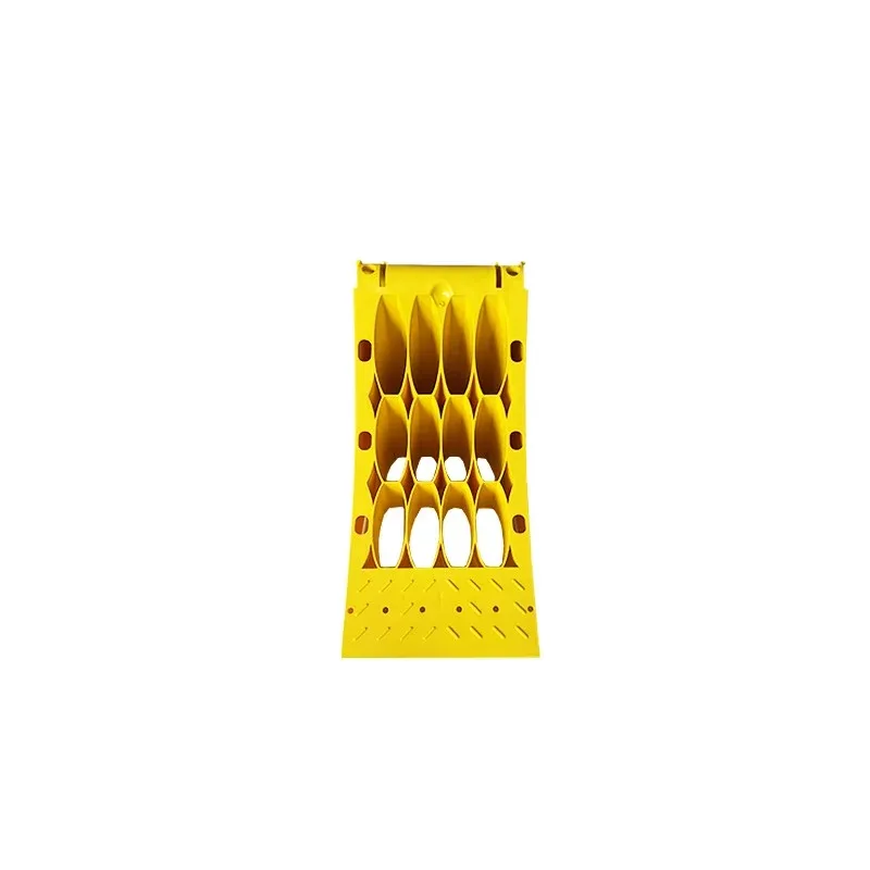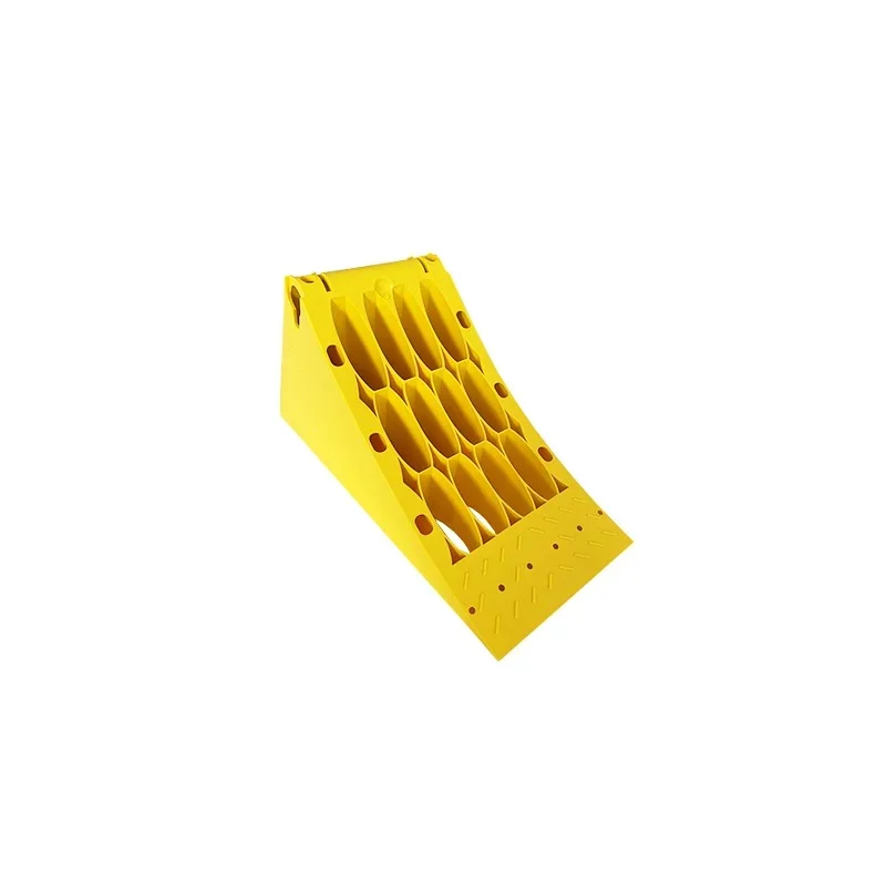 Žlutý plastový protiskluzový klín je vyroben z odolného termoplastického plastu a ocelovým výztužným prvkem představuje nezbytný bezpečnostní prvek pro vozidla. Výrazně žlutá barva zajišťuje viditelnost, zatímco perforovaná a zesílená konstrukce s protiskluzovým povrchem zaručuje maximální stabilitu na různých typech povrchů – asfaltu, štěrku i nezpevněném terénu.