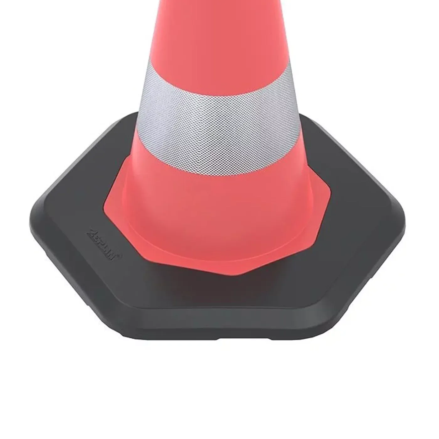 Zátěžová základna je určena pro dodatečné zatížení dopravních kuželů a jejich stabilizaci při silném větru nebo provozním zatížení. Je vyrobena z odolného PVC materiálu, který zajišťuje dlouhou životnost, tvarovou stálost a odolnost vůči povětrnostním vlivům. Díky jednoduchému nasazení na základnu kuželu je instalace rychlá a bez potřeby nářadí.