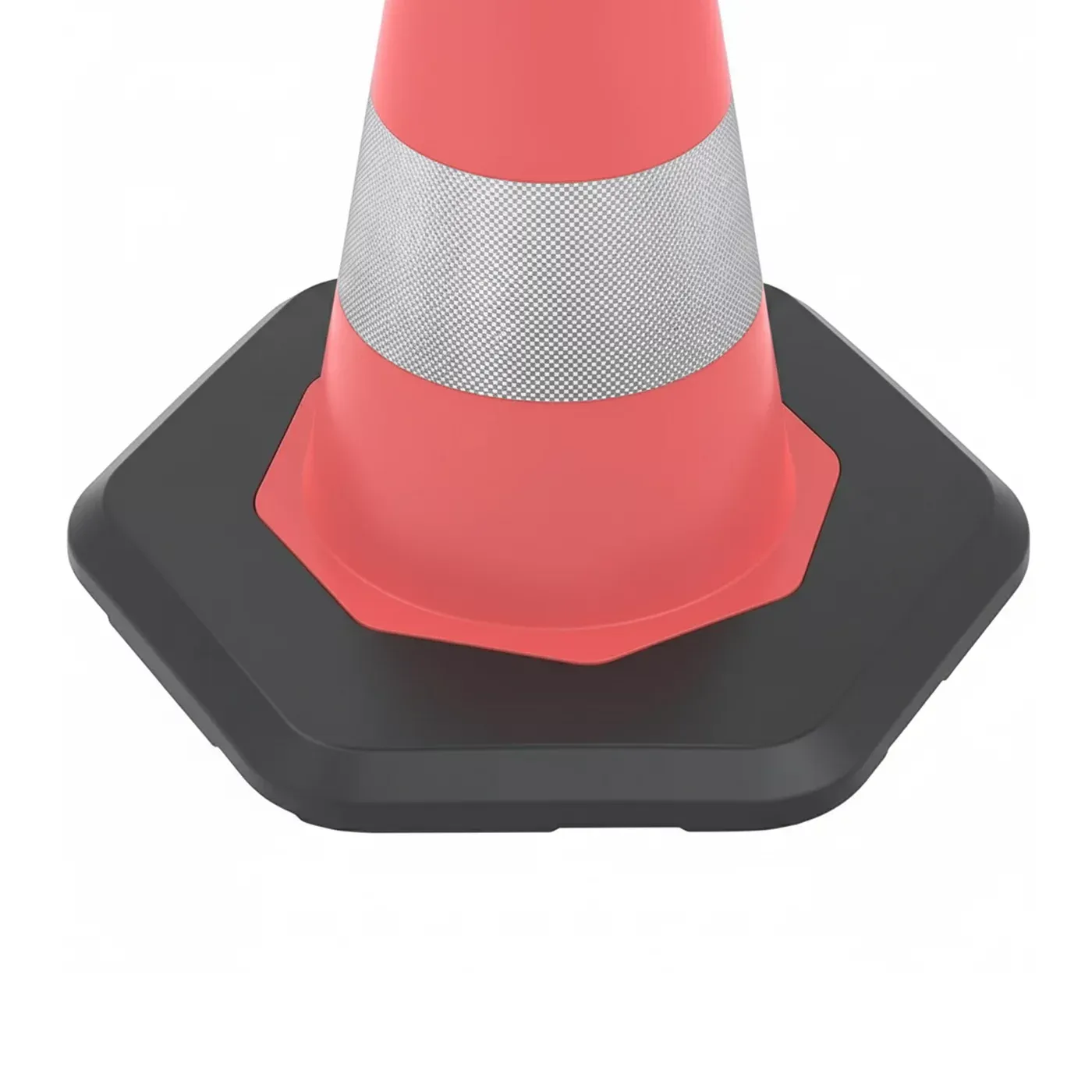 Dopravní reflexní kužel s podstavcem je vyroben z vysoce kvalitního polyethylenu (PE), který zajišťuje jeho dlouhou životnost a výjimečnou odolnost vůči povětrnostním vlivům. Díky pevnému a stabilnímu materiálu nabízí vyváženou kombinaci lehkosti a robustnosti – ideální pro převážně vnější použití.
