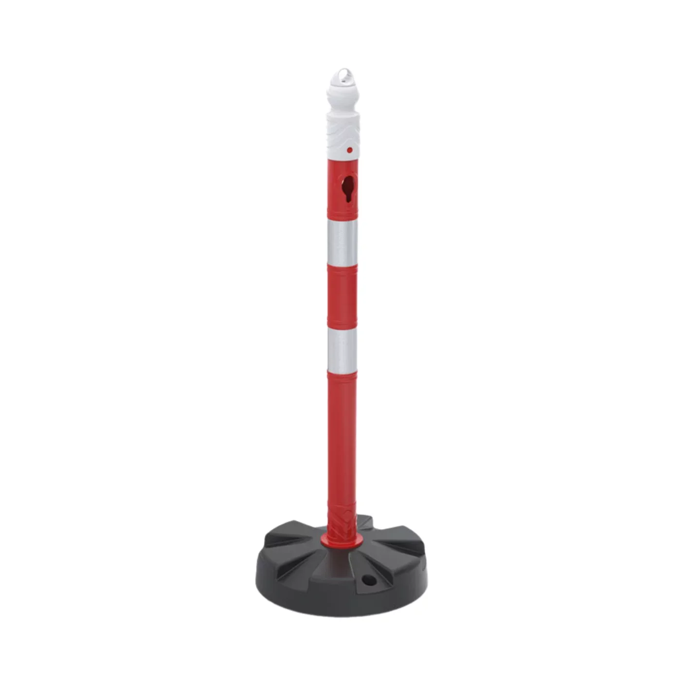 Dopravní výstražný sloupek o průměru 63 cm a výšce 100 cm je vyroben z kombinace PPC a PVC materiálu, což zajišťuje odolnost vůči povětrnostním vlivům, stálost barev a dlouhou životnost. Sloupek je vybaven vysoce reflexními pásy pro maximální viditelnost ve dne i v noci a díky přidané váze PVC je odolný proti převrácení. UV-blendovaná speciální směs zajišťuje vysokou jasnost a trvanlivost barev.