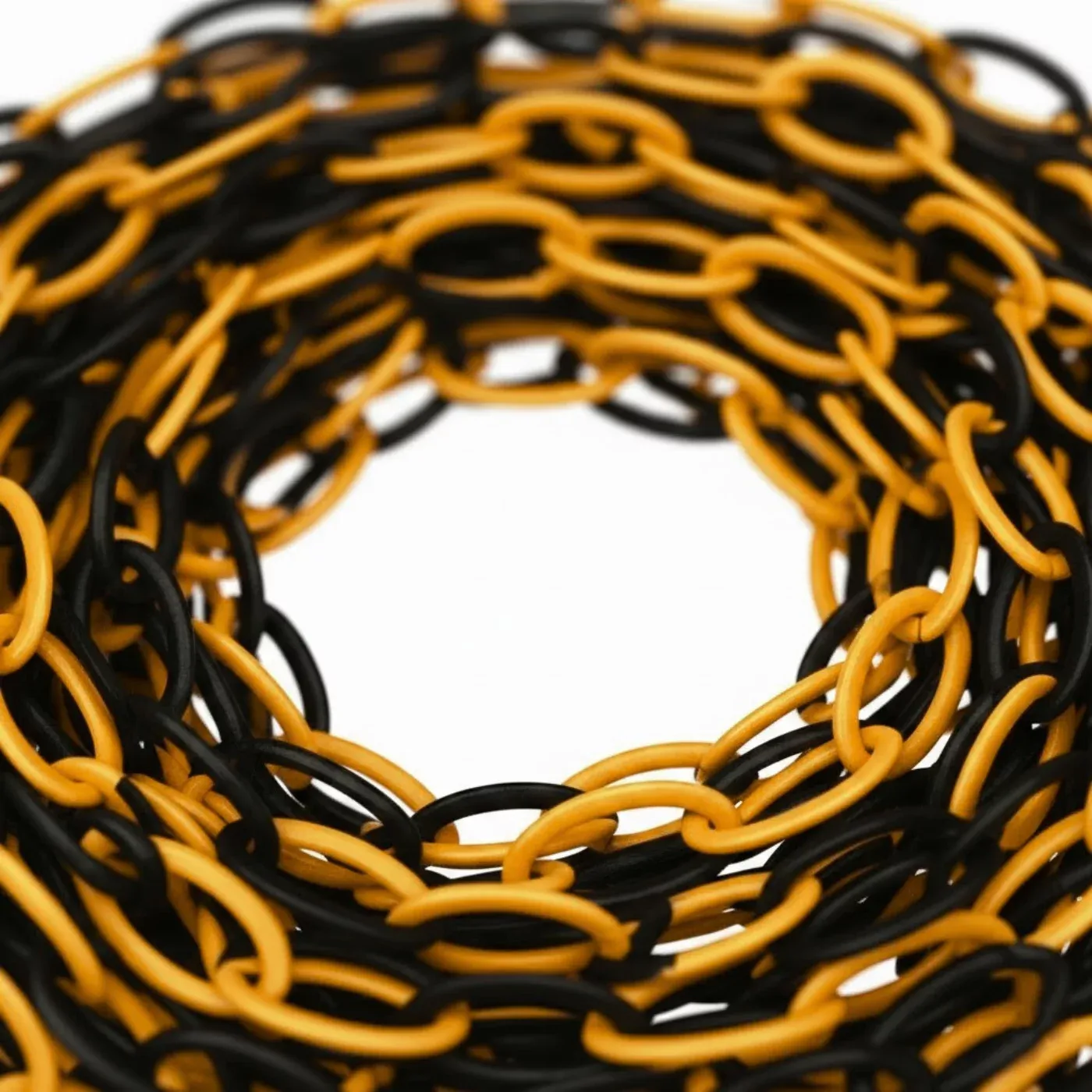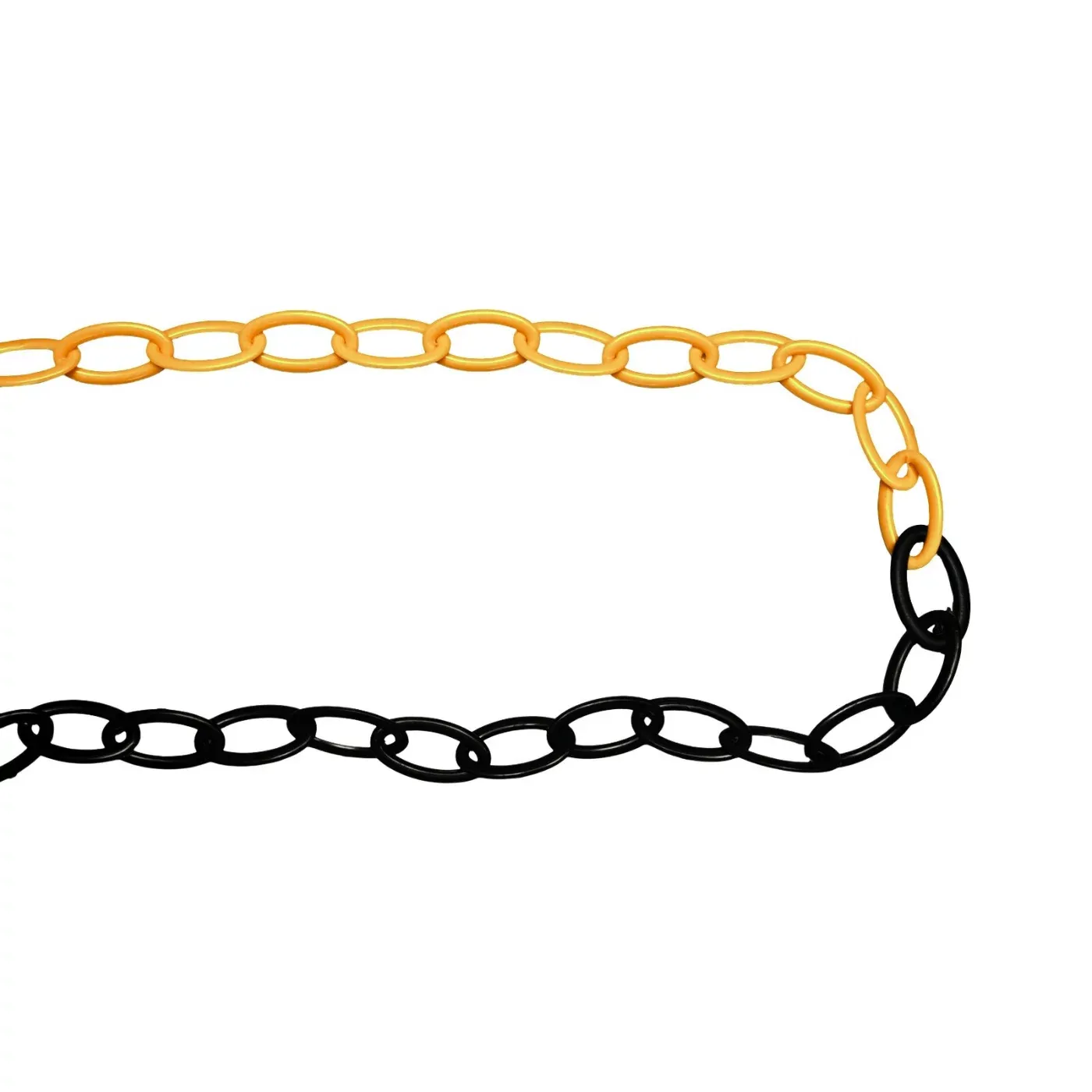 Kombinace černé a žluté barvy je zvolena pro maximální vizuální výstrahu, která je v souladu s bezpečnostními standardy pro označování rizikových zón, překážek a prostorů se zákazem vstupu. Materiál je plně odolný vůči UV záření, dešti i mrazu, což umožňuje jeho dlouhodobé nasazení v exteriéru bez rizika vyblednutí barev nebo ztráty pevnosti. Řetěz je dielektrický (nevodivý) a nemagnetický, což rozšiřuje jeho možnosti použití v blízkosti elektrických zařízení.