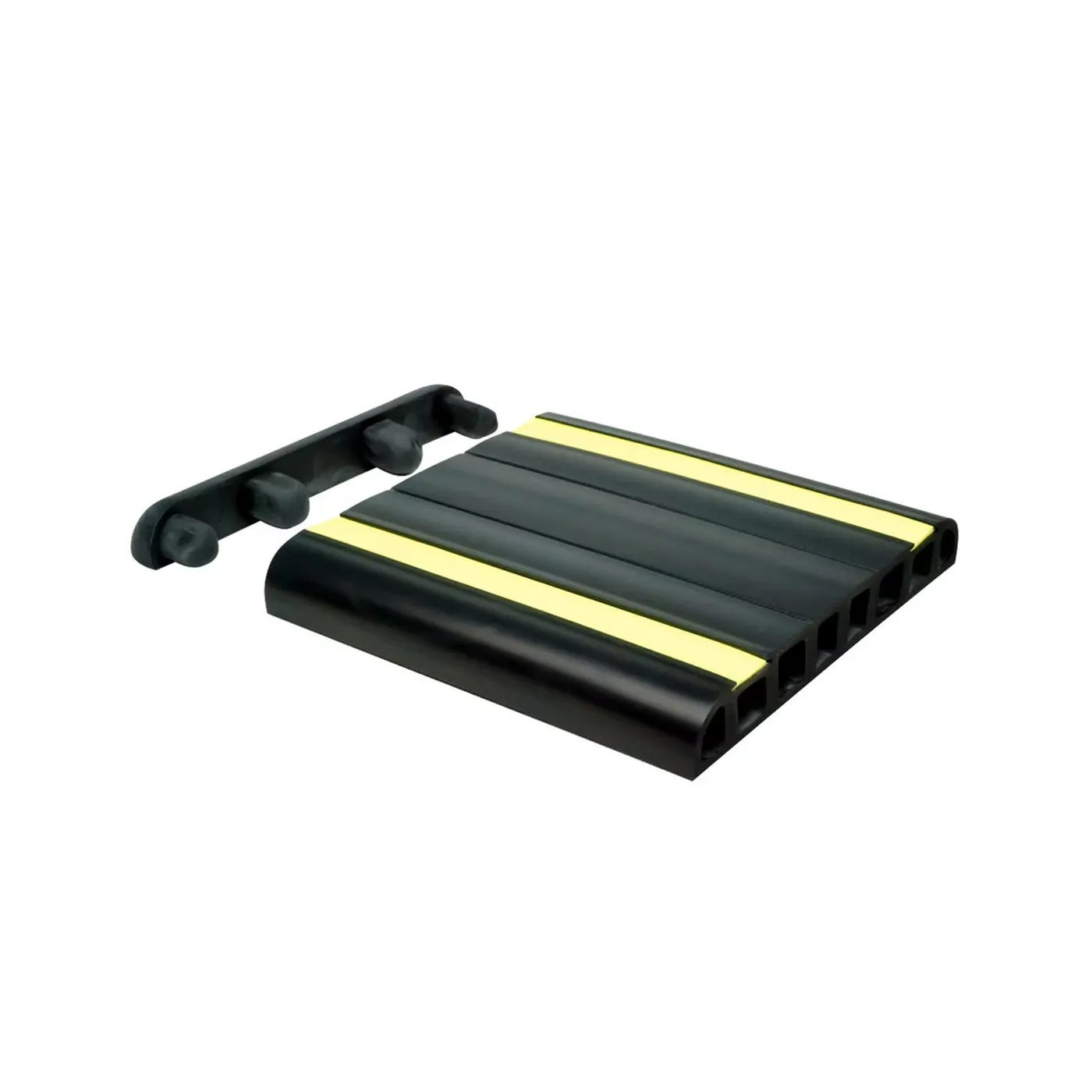 Černá gumová koncovka pro ochranu zdí a stěn slouží k estetickému zakončení a uzavření otevřených konců gumových ochranných panelů stěn (wall protector). Jednoduše se nasadí na konec pásu a dodá řešení čistý a bezpečný vzhled.