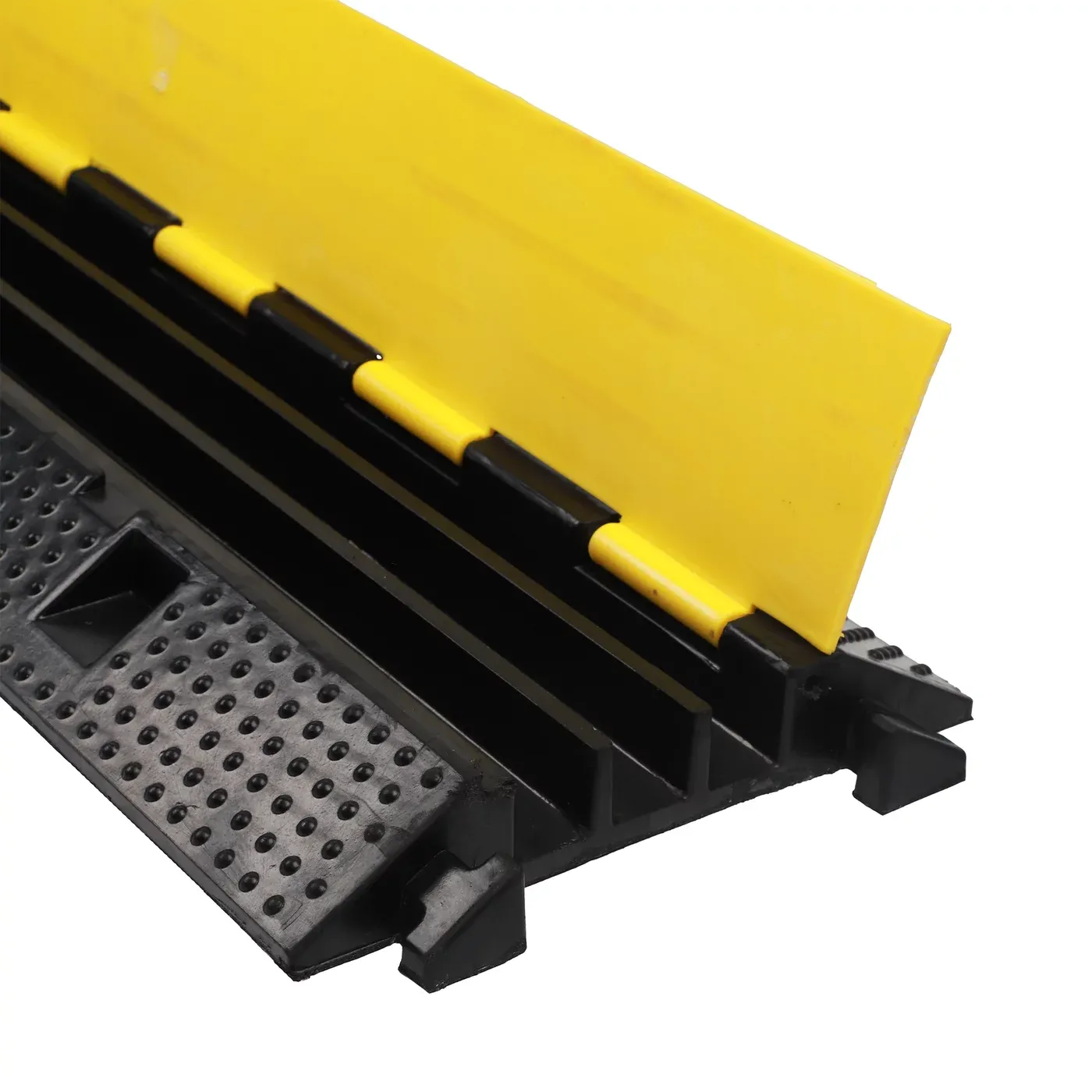 Tříkanálový černo-žlutý kabelový most s nosností až 6 tun představuje špičkové řešení pro organizaci a ochranu rozsáhlejších kabelových rozvodů. Díky třem samostatným oddílům umožňuje bezpečné vedení více nezávislých linií, čímž eliminuje riziko jejich zamotání, mechanického poškození nebo vzájemného rušení signálů. Tento robustní most slouží jako efektivní ochranný štít v místech s intenzivním pohybem chodců i vozidel a zaručuje bezpečný provoz v náročných průmyslových i kulturních podmínkách.
