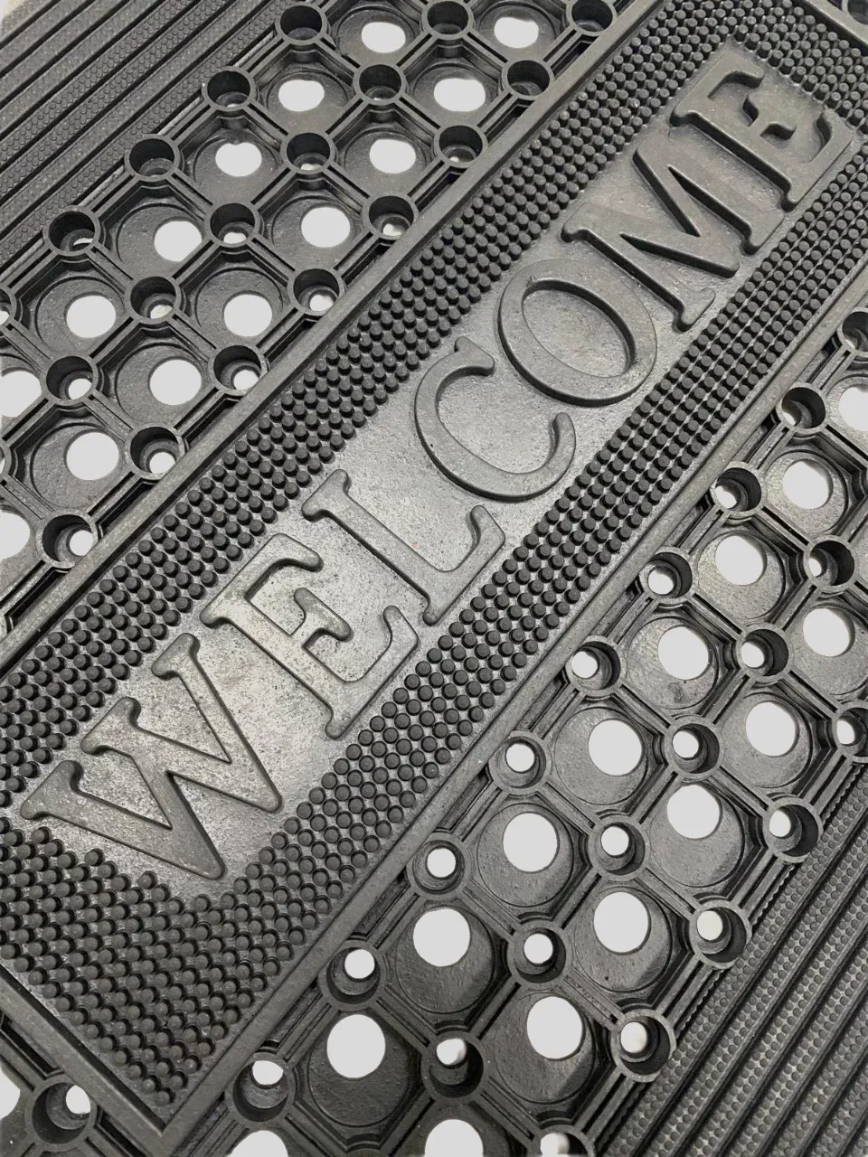 Gumová vstupní rohož FLOMA HoneyComb Ramp Welcome představuje vysoce efektivní řešení pro udržení čistoty ve vašem objektu. Tato venkovní čistící rohož kombinuje otevřenou strukturu s pevnou částí obsahující nápis Welcome a pevnými okraji. Rohožka velmi dobře odstraňuje nečistoty z obuvi. Díky svému hezkému designu a odolnosti je ideální volbou pro málo a středně frekventované vstupy, kde je kladen důraz na funkčnost i bezpečnost.