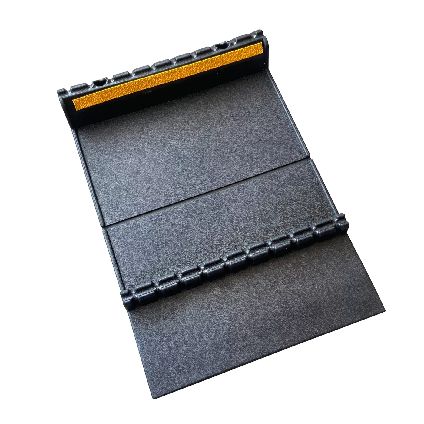 Parkovací doraz vyniká svou robustní konstrukcí a univerzálním designem, který je vhodný i pro těžší techniku a nákladní vozy. Velkou výhodou je jeho skládací provedení, které umožňuje snadnou přepravu a skladování v případě dočasného použití. Součástí balení jsou také kotvící šrouby pro pevnou instalaci.