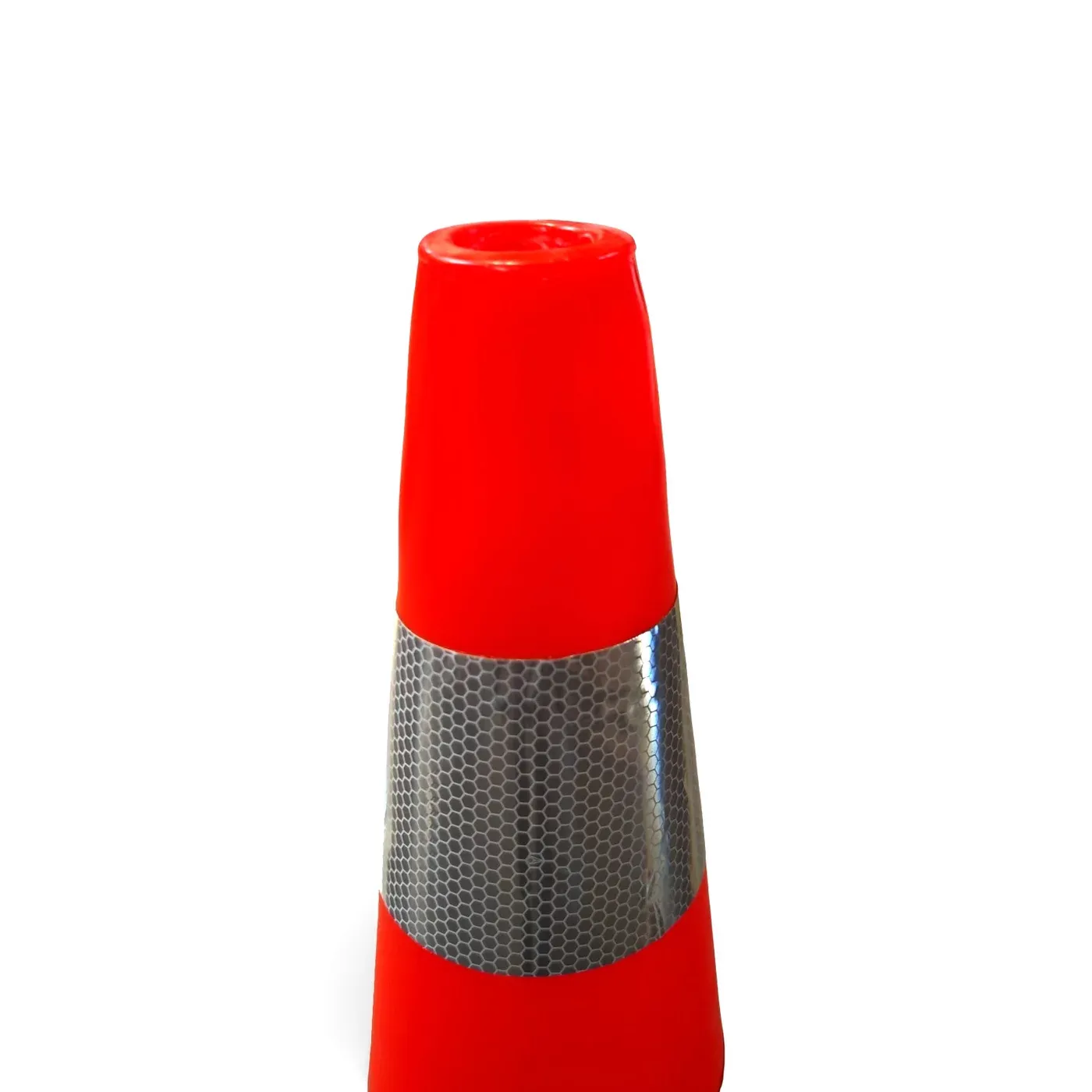 Dopravní kužel je vyroben z prvotřídního vysokozátěžového PVC, které vyniká mimořádnou elasticitou a tvarovou pamětí. Materiál je plně rezistentní vůči UV záření, mrazu i chemickým vlivům, což zaručuje jeho dlouhodobou spolehlivost a barevnou stálost při každodenním nasazení v nejnáročnějších venkovních podmínkách. Navzdory své velikosti umožňuje kónický tvar snadné stohování, což usnadňuje transport většího množství jednotek na místo zásahu.