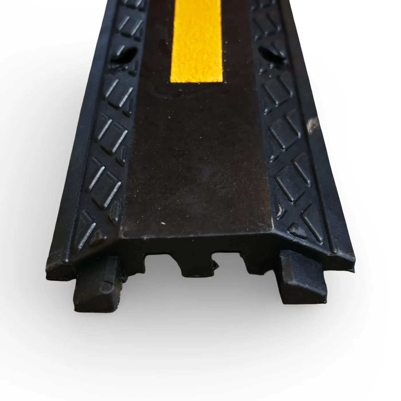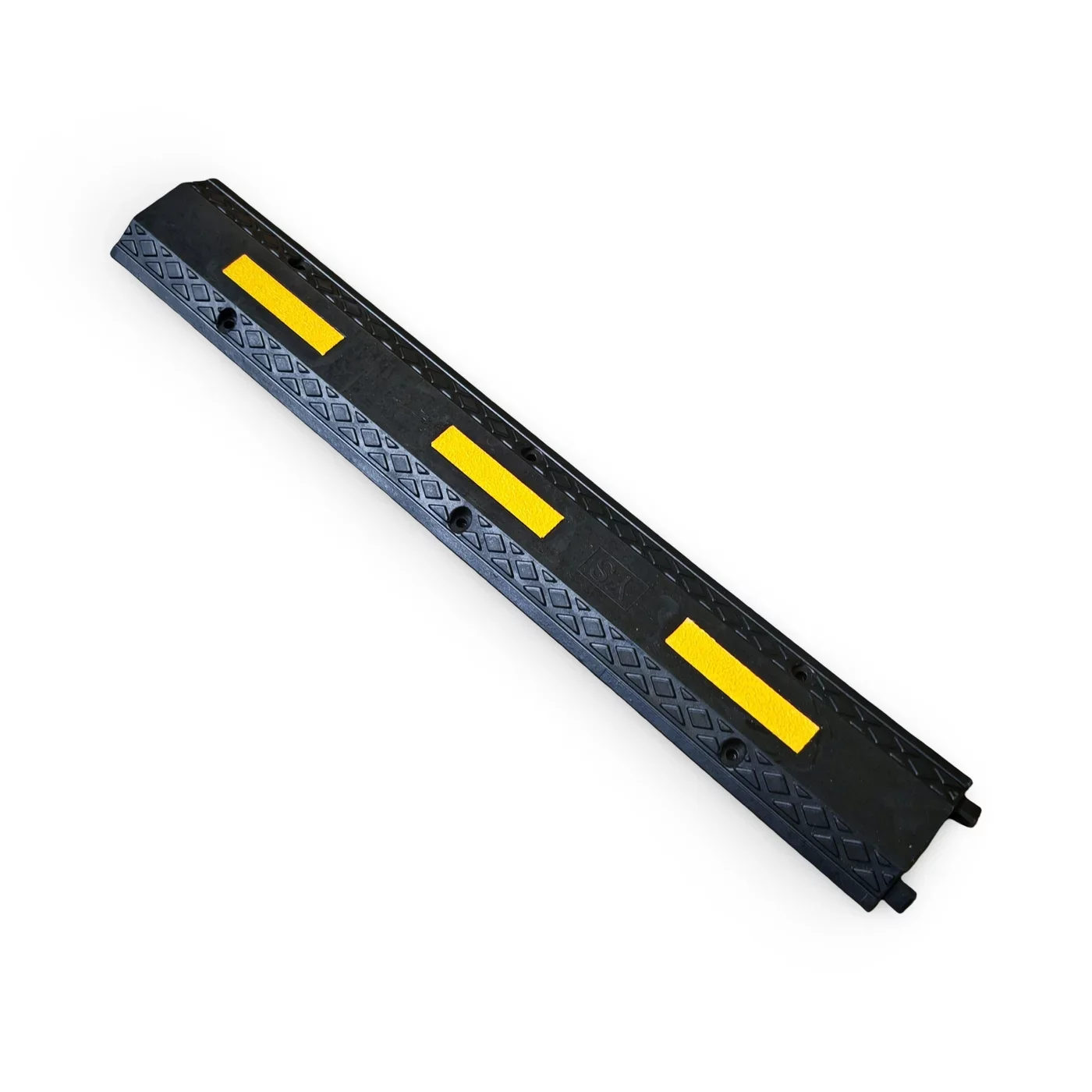 Černo-žlutý dvoukanálový kabelový most s nosností až 6 tun představuje vysoce odolné a stabilní řešení pro ochranu inženýrských sítí v náročných podmínkách. Díky kombinaci masivní gumové základny a odolných prvků je tento most navržen tak, aby spolehlivě odolával mechanickému tlaku i frekventovanému pojezdu techniky. Volně položené kabely v místech s pohybem osob či vozidel nepředstavují pouze riziko poškození vybavení, ale jsou především nebezpečnou překážkou, kterou tento most efektivně eliminuje.