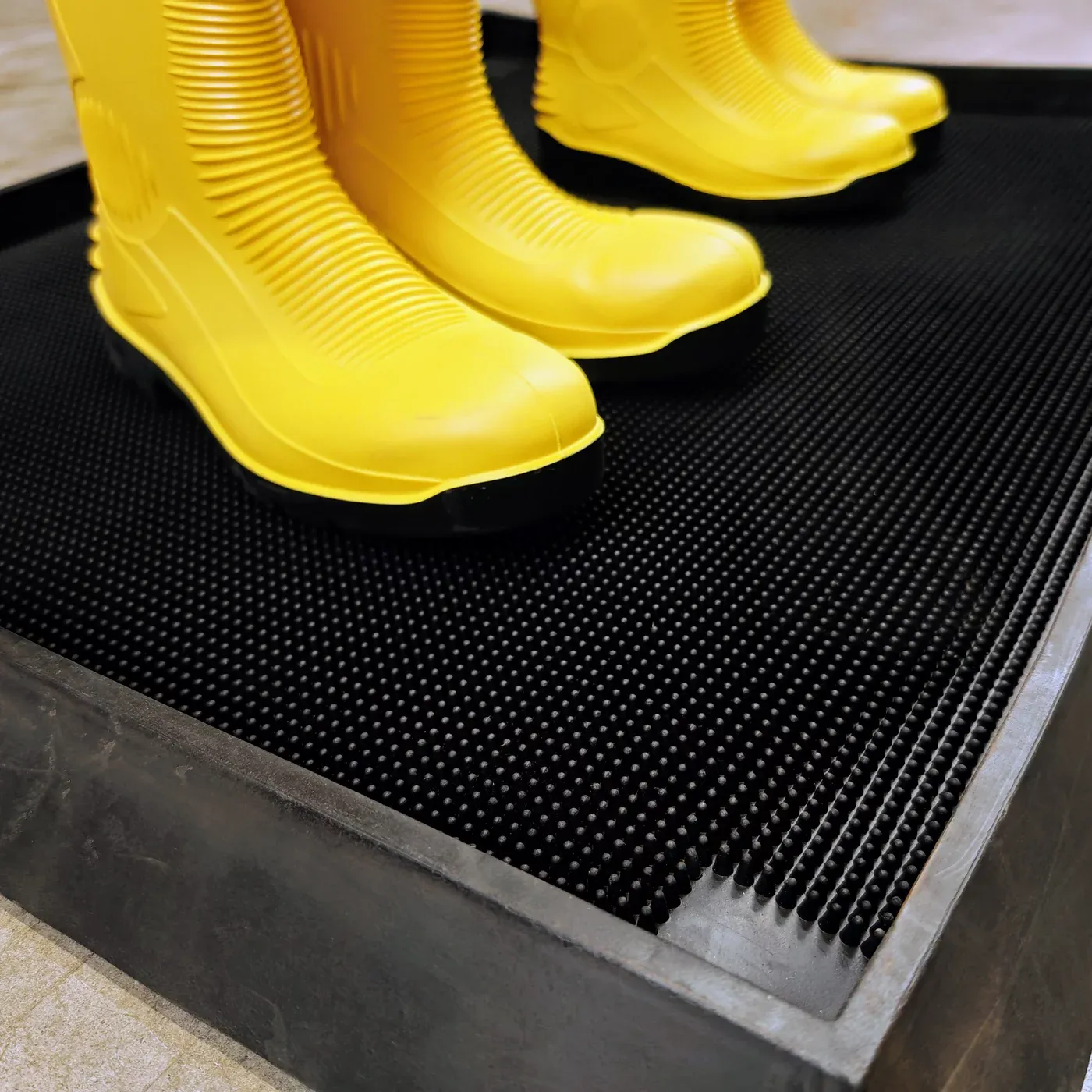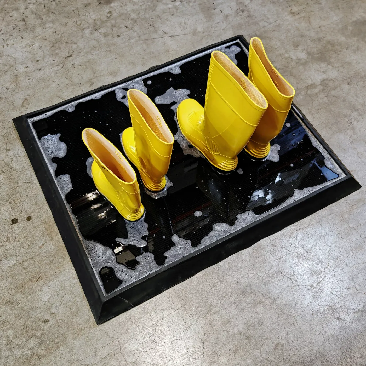 Dezinfekční hygienická rohož FLOMA SD30 je robustní a vysoce účinná vstupní rohož navržená pro profesionální dezinfekci obuvi v prostředích s přísnými hygienickými požadavky. Je ideální pro potravinářský průmysl, zemědělství, zdravotnická zařízení i laboratoře. Díky hlubokému dezinfekčnímu profilu umožňuje důkladné smočení podrážek a spolehlivě napomáhá redukci mikrobiologického znečištění na vstupu do provozů.