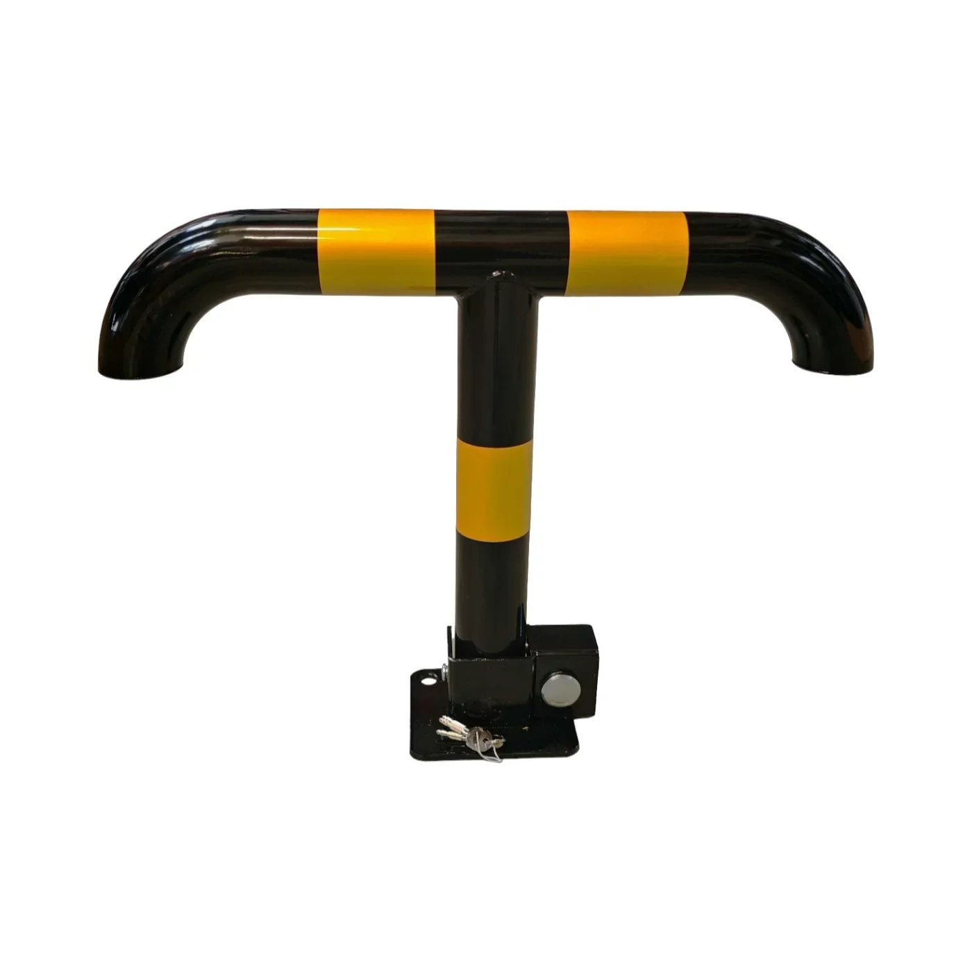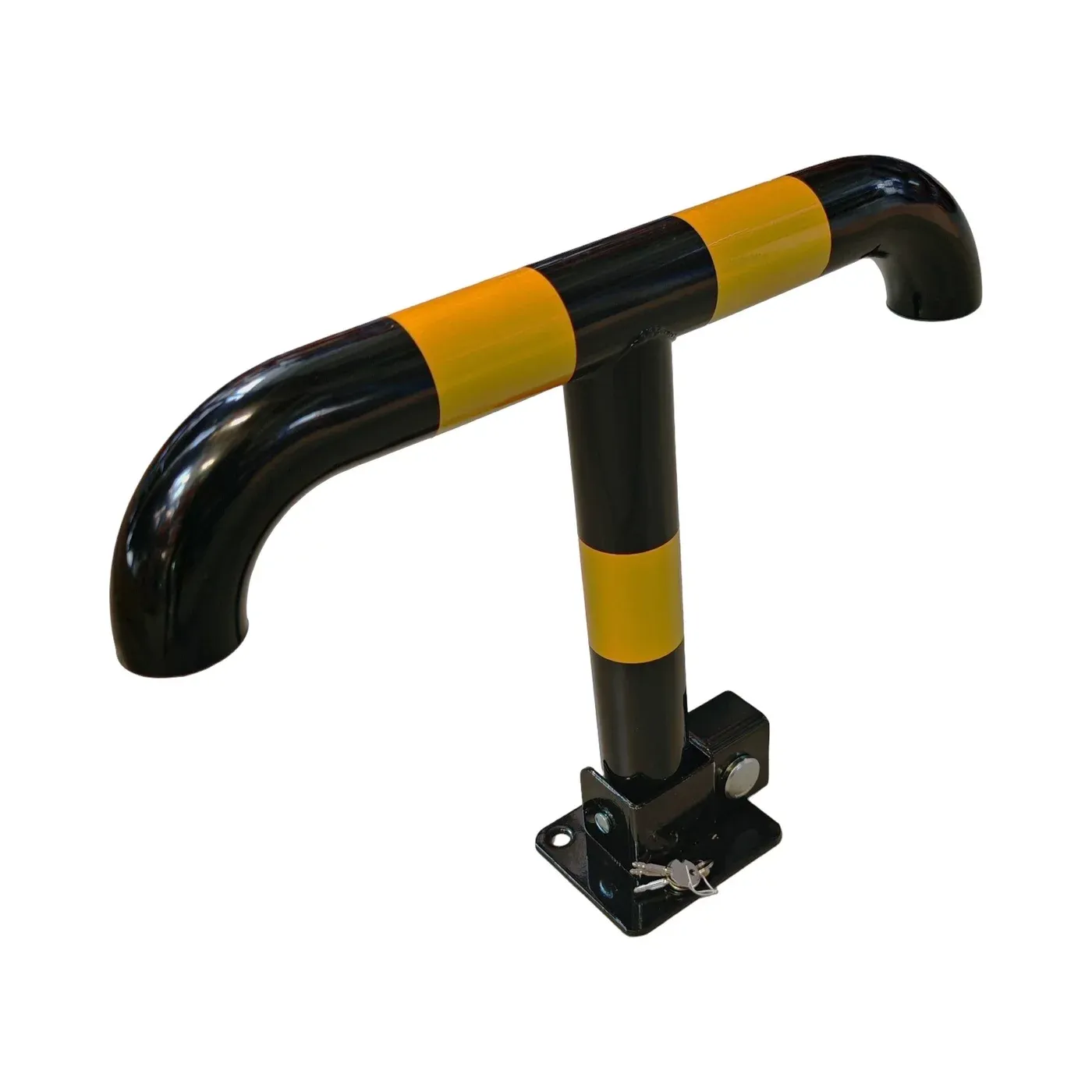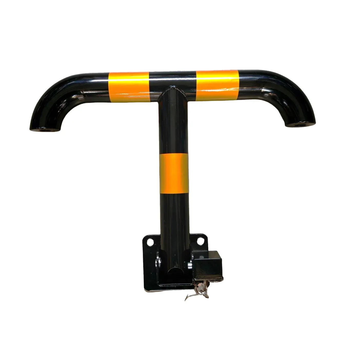 Ocelová sklopná parkovací zábrana v černo-žluté kombinaci představuje robustní mechanické řešení pro ochranu a správu vyhrazených parkovacích míst. S délkou 55 cm a výškou 40 cm patří mezi masivní bezpečnostní prvky, které díky své konstrukci poskytují vysokou stabilitu a odolnost. Tato ocelová podkova je navržena tak, aby odolala nejen pokusům o neoprávněné parkování, ale i náročným vnějším vlivům a nárazům.