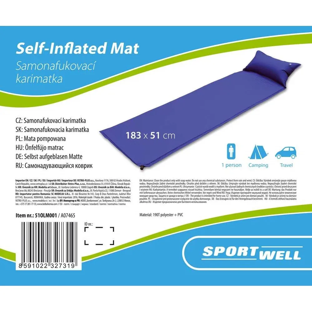 Informace o zboží Modrá samonafukovací karimatka s podhlavníkem - 183 x 51 x 2,5 cm