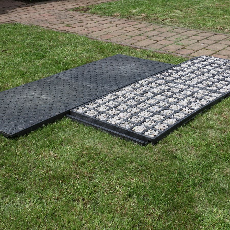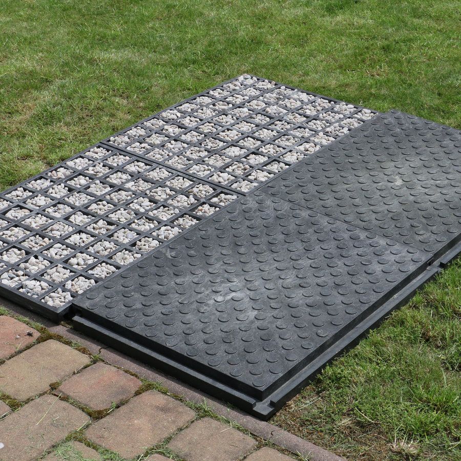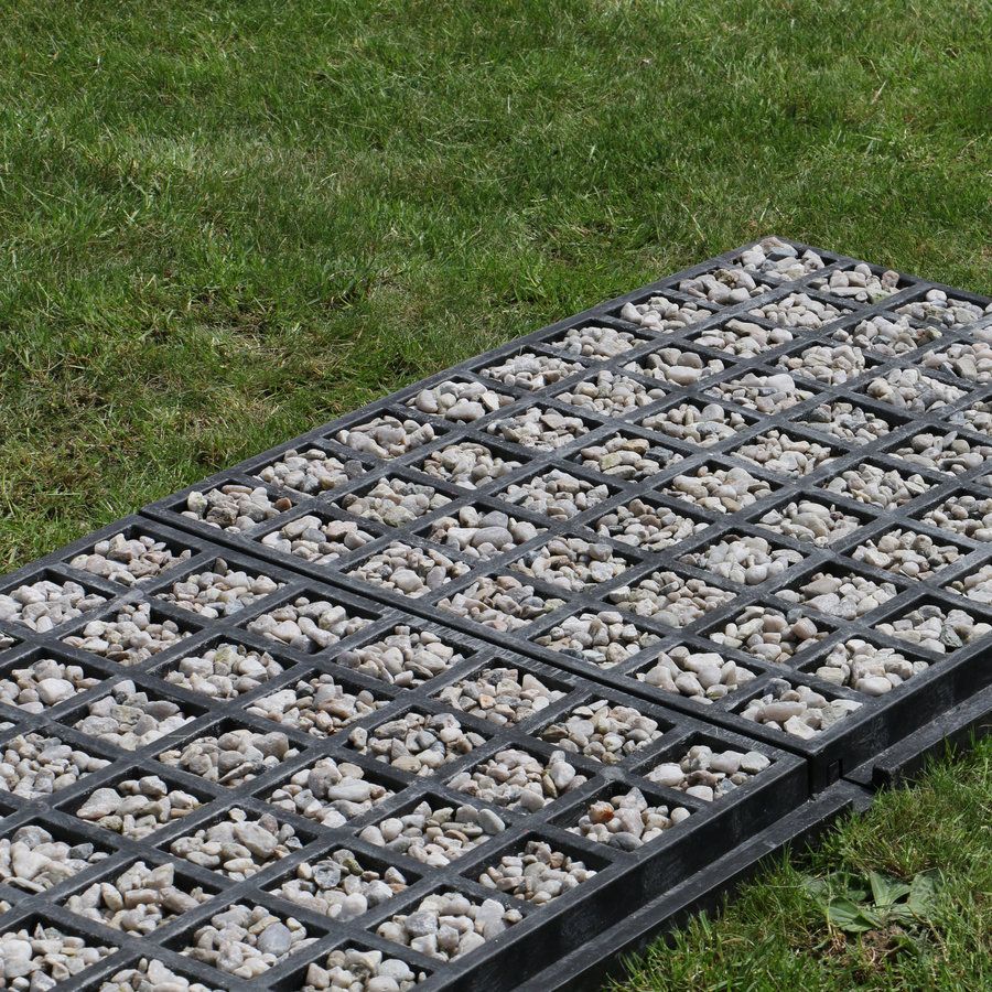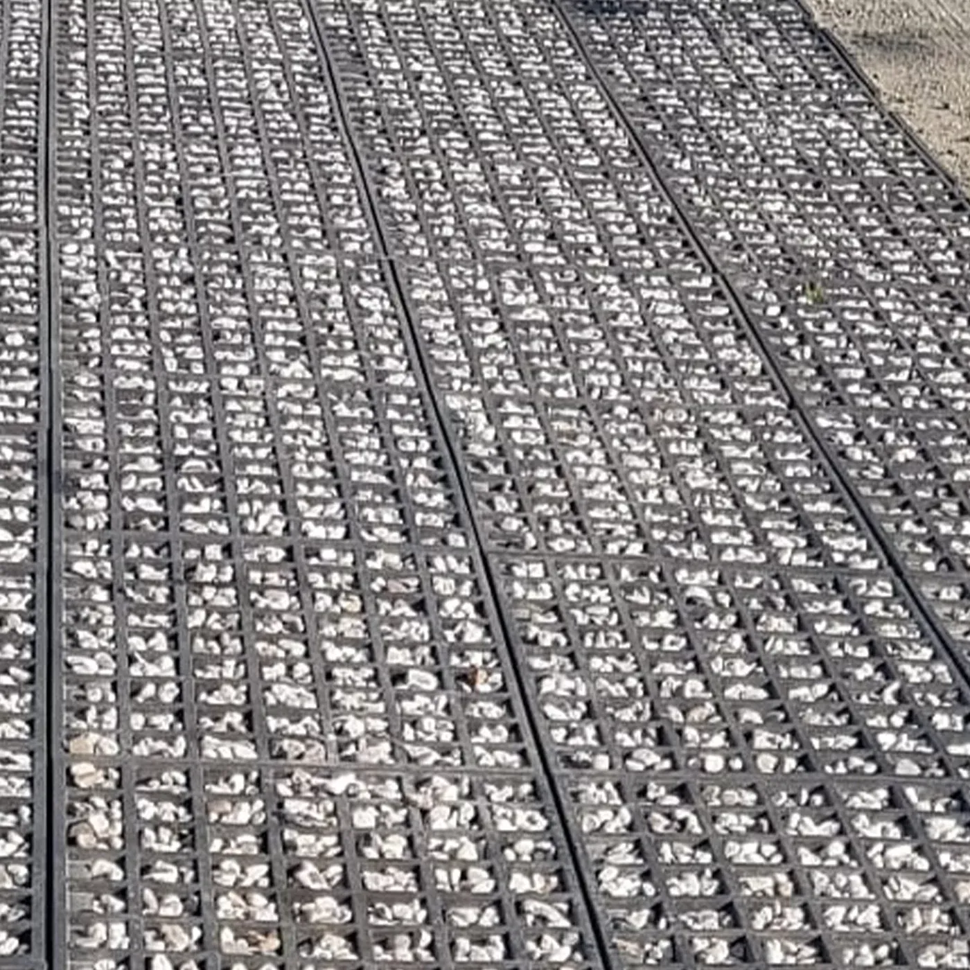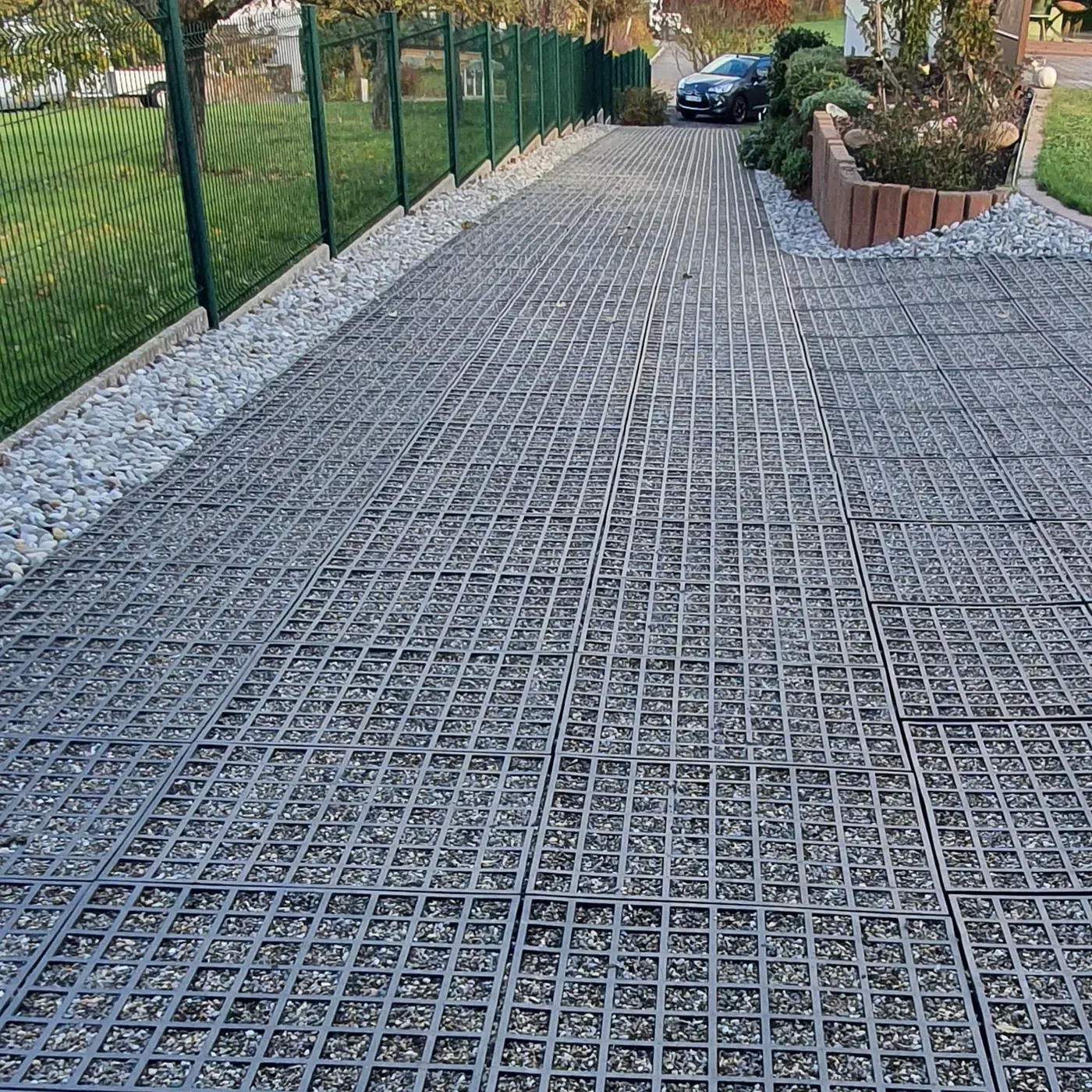 Podlahový zátěžový rošt s nosností až 3,5 tuny na 1 dm2 lze využít např. na vytvoření parkovišť, příjezdů do garáží, chodníků, zpevnění a zatravnění svahů. Rošt je vhodný i pod těžkou techniku.