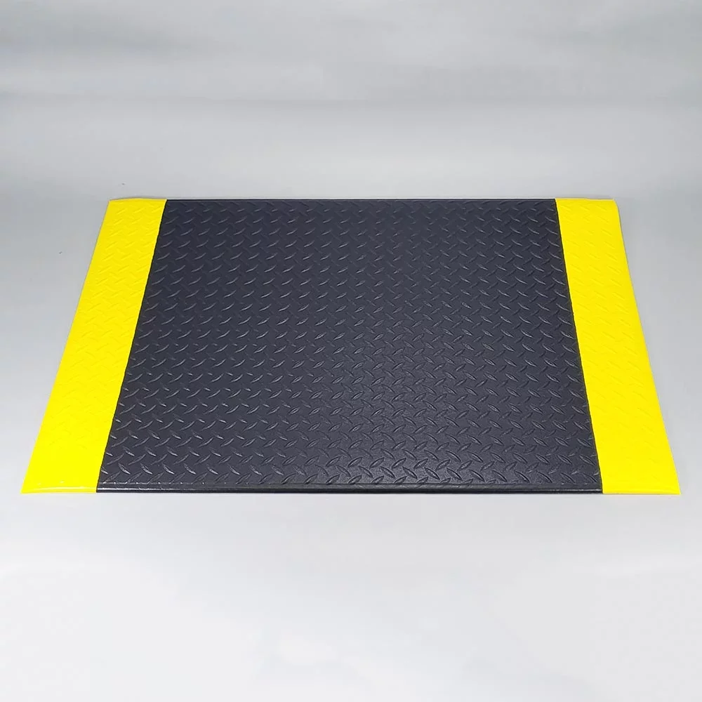 Černo-žlutá laminovaná průmyslová protiúnavová rohož s vysokou odolností je určena pro náročné průmyslové podmínky s vysokou zátěží. Tato rohož je určena pro náročné průmyslové podmínky s vysokou zátěží, povrch rohože je vyroben z tvrzeného PVC, který je odolný vůči otěru a většině průmyslových chemikálií. Pěnová výplň rohože poskytuje komfort a zmírňuje únavu z dlouhodobého stání a ochraňuje pracovníky před negativními efekty tvrdých a studených betonových podlah.