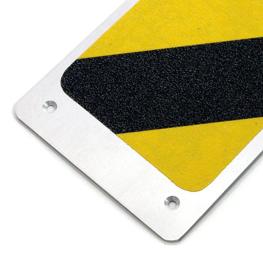 Korundový protiskluzový pásek připevněný na hliníkový plát. Pásek snižuje riziko uklouznutí na shodištích nebo plošinách z kovových roštů. Pásek je velice jednoduché namontovat.