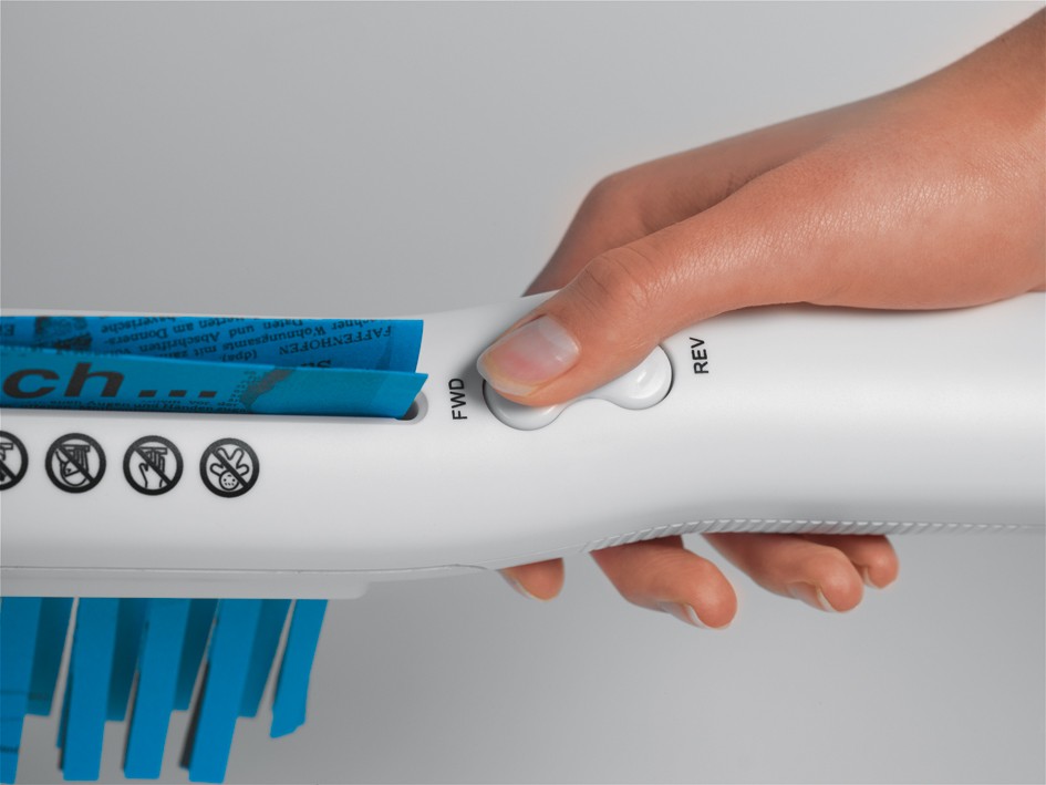 - Skartovač pracuje na 4x AA baterie nebo na adaptér