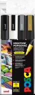Sada popis.Posca, 4 ks,černá,bílá,zlatá,stříb. PC-5M