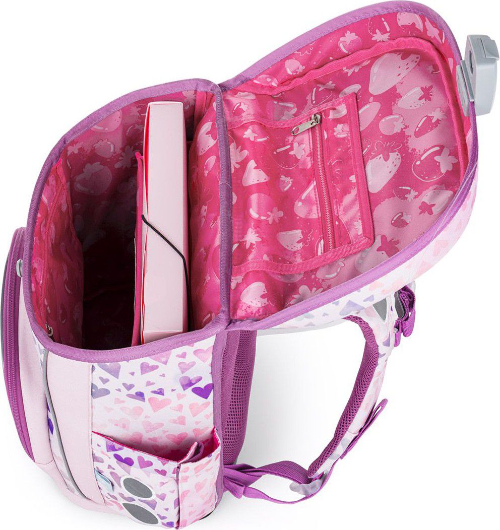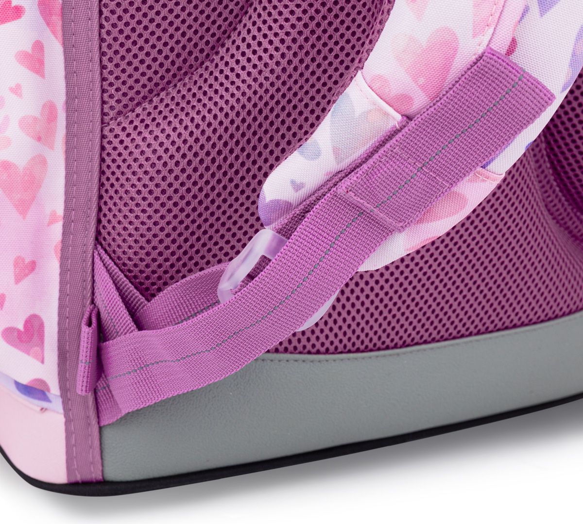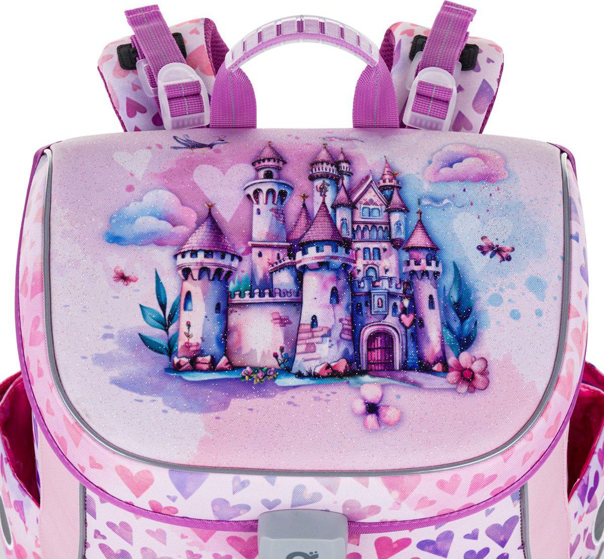 Pohádkový růžovo-fialový motiv s princeznou a jednorožcem, doplněný jemnými srdíčky a třpytivými detaily, dodává aktovce kouzelný vzhled. Vaše malá školačka si ji zamiluje na první pohled.