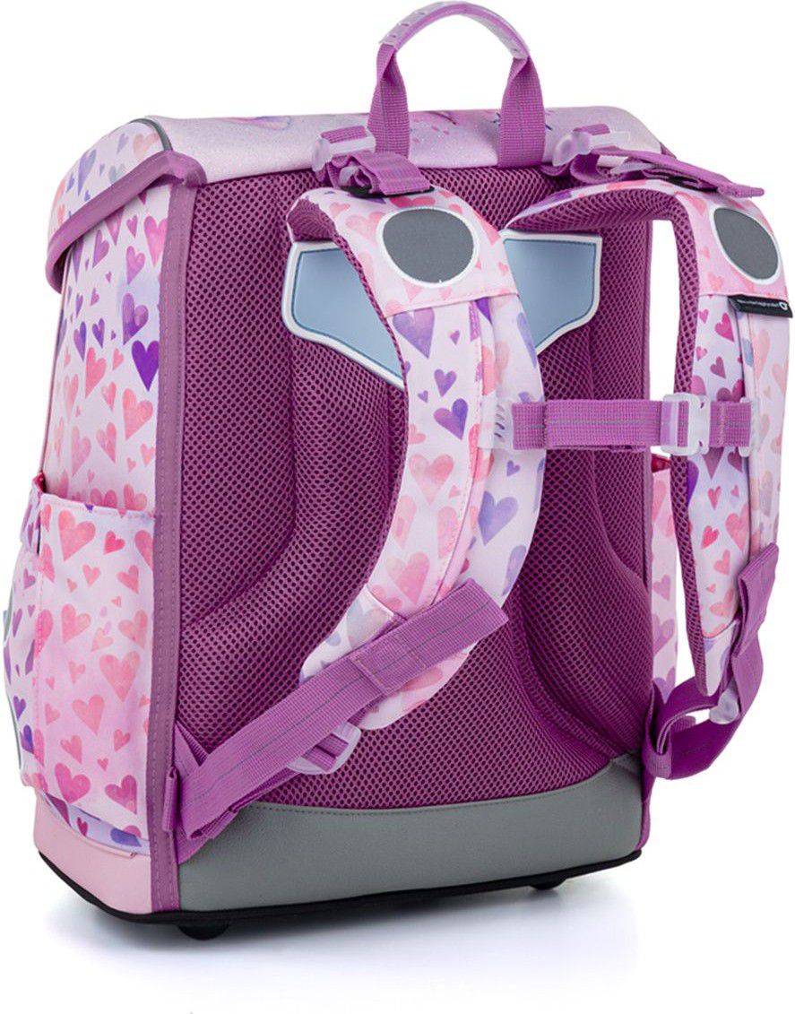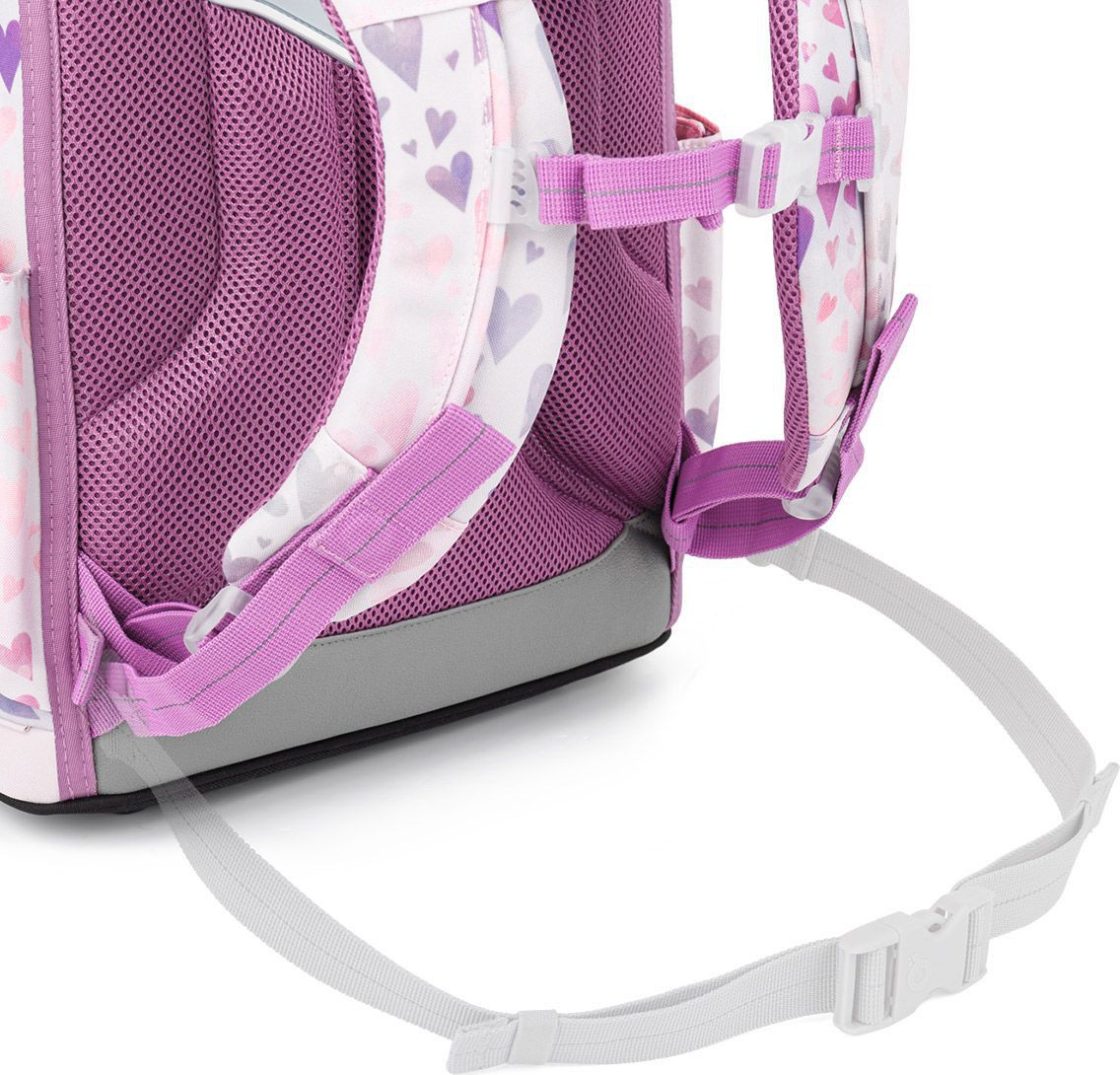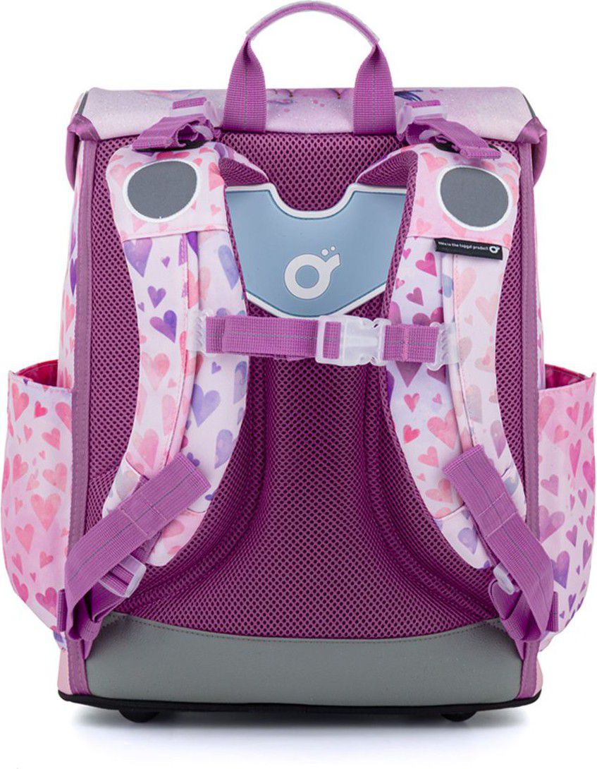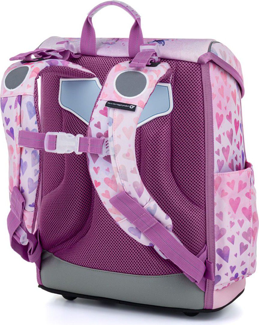 Pohádkový růžovo-fialový motiv s princeznou a jednorožcem, doplněný jemnými srdíčky a třpytivými detaily, dodává aktovce kouzelný vzhled. Vaše malá školačka si ji zamiluje na první pohled.
