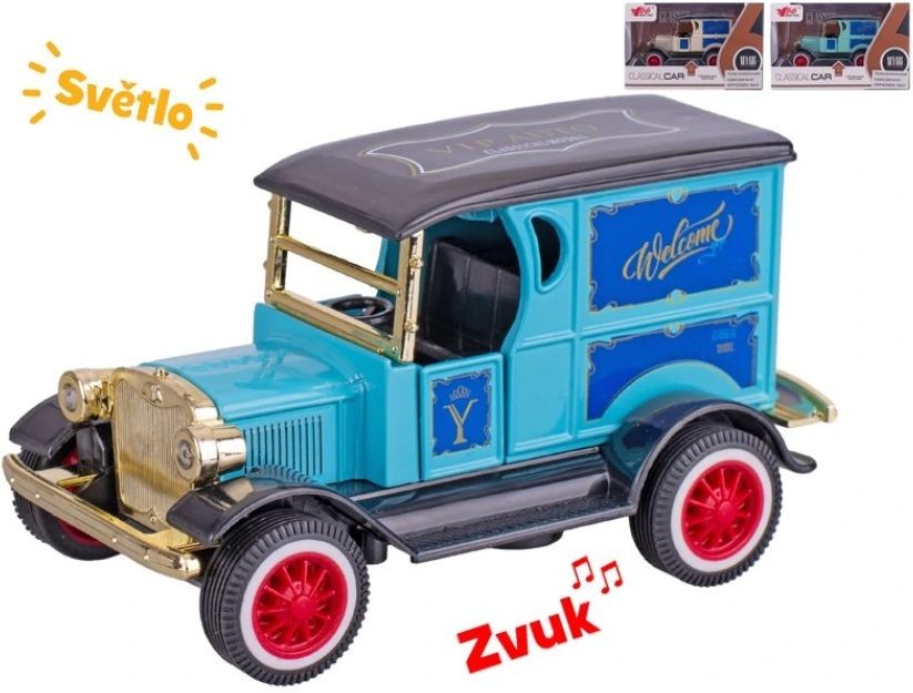 Informace o zboží Auto old timer 11cm kovové, zpětný chod, se světlem a zvukem, 3barvy