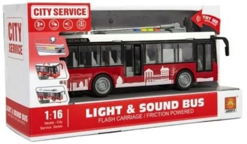 - Model autobusu v měřítku 1:16 je vyroben z kvalitního plastu, na setrvačník, se světlem a se zvukem.