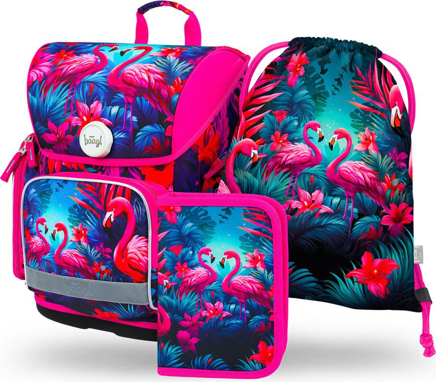 Informace o zboží BAAGL 3 SET Ergo Plameňáci: aktovka, penál, sáček