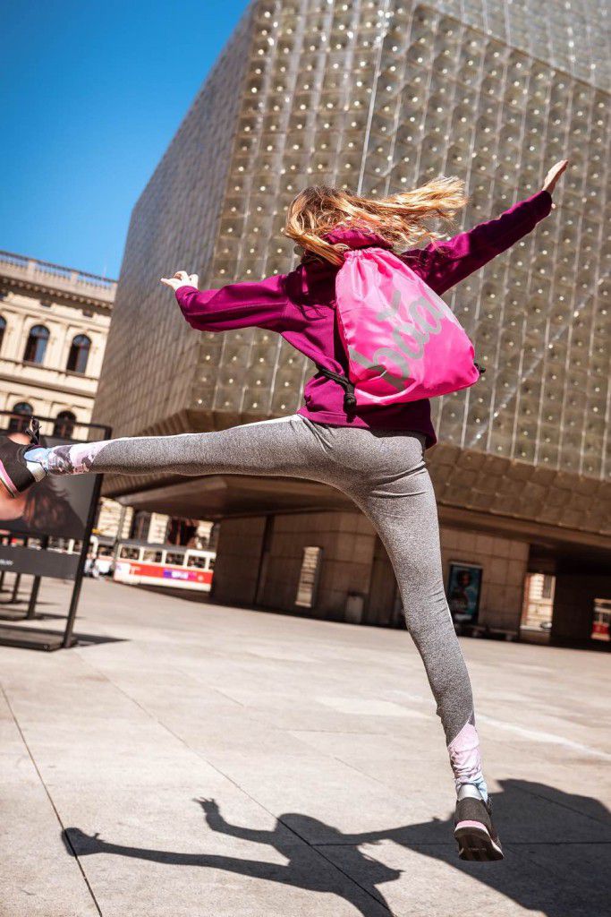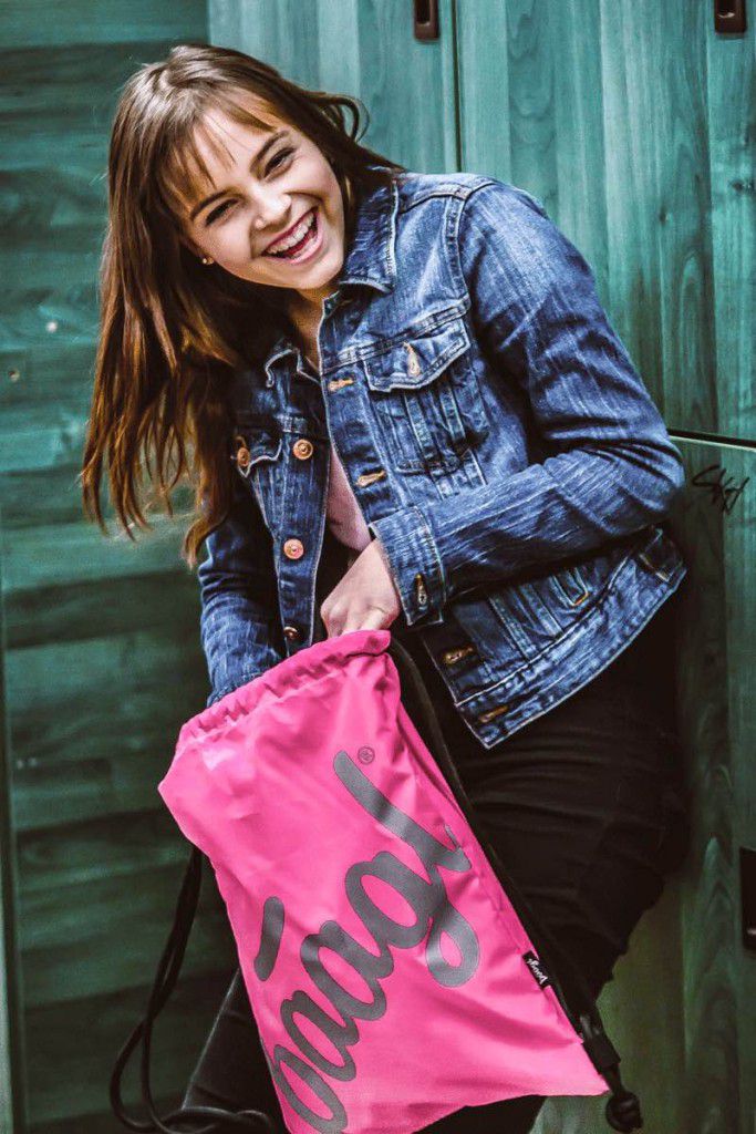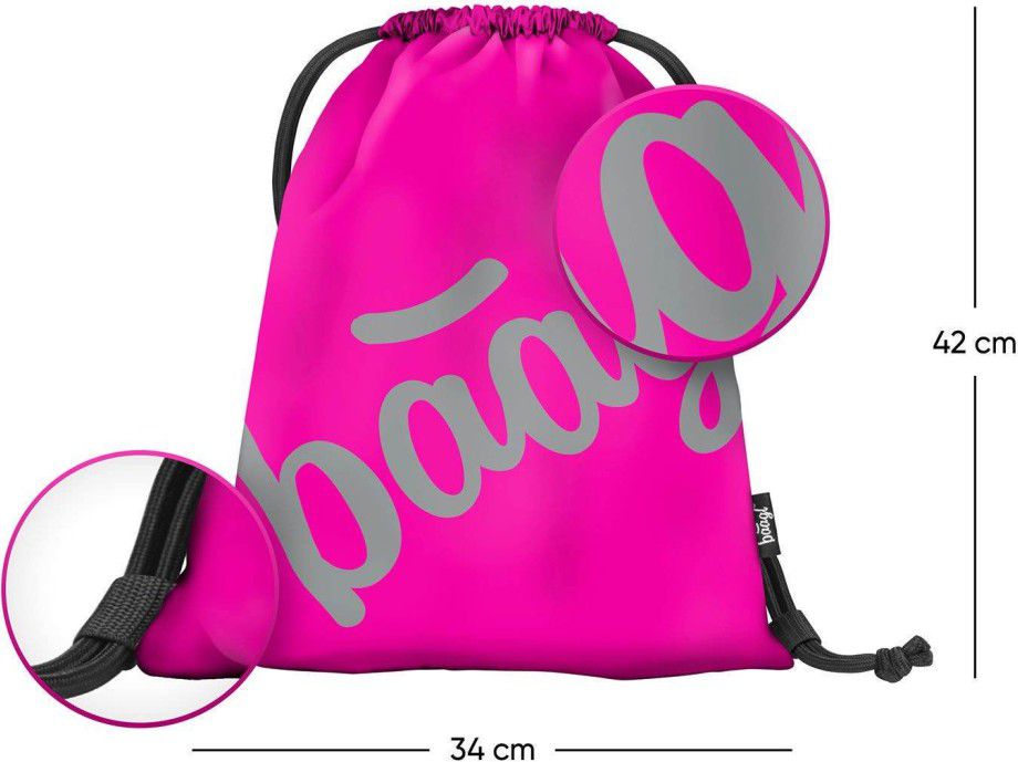 • Sáček na cvičky nebo přezůvky v růžové barvě s logem Baagl, které ve tmě svítí