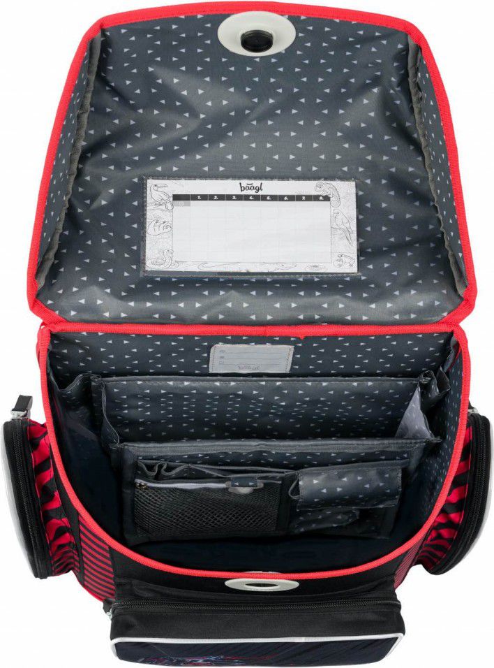 • Uvnitř aktovky je průhledná kapsa s rozvrhem a vnitřní organizér umožňující rovnoměrné rozložení hmotnosti.