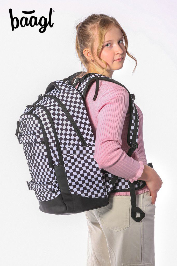 - Postranní kapsy, ideální například na tritanové láhve BAAGL, jsou vyrobeny z pevného materiálu sladěného s designem batohu.