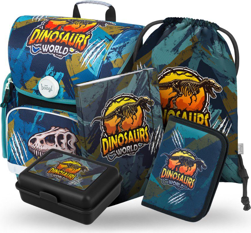 BAAGL SET 5 Ergo Dinosaurs World: aktovka, penál, sáček, desky, box