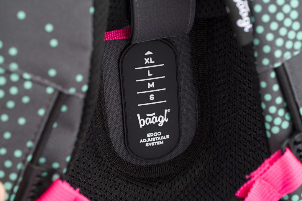 - Posuvný zádový systém ERGO ADJUSTABLE SYSTEM umožňuje nastavení optimální polohy popruhů vzhledem k výšce dítěte.