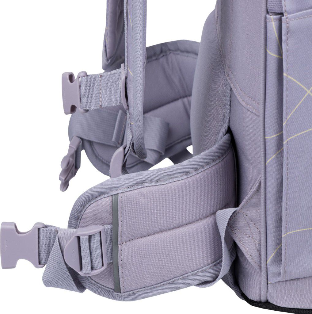 • Batoh z recyklovaného, voděodolného materiálu je opatřen řadou reflexních prvků pro maximální bezpečnost dítěte i za snížené viditelnosti.