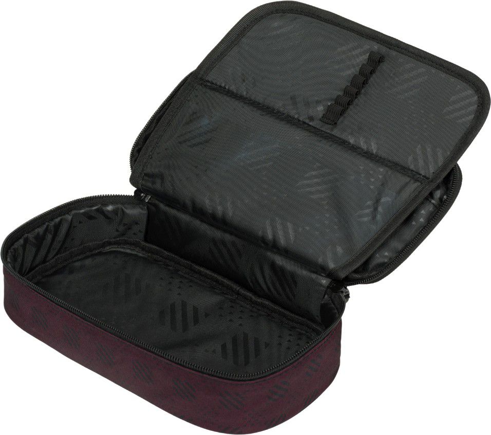 - Kompaktní penál na zip s prostornou hlavní komorou a dvojitou výklopnou chlopní nabízí dostatek prostoru pro psací potřeby i drobnosti.