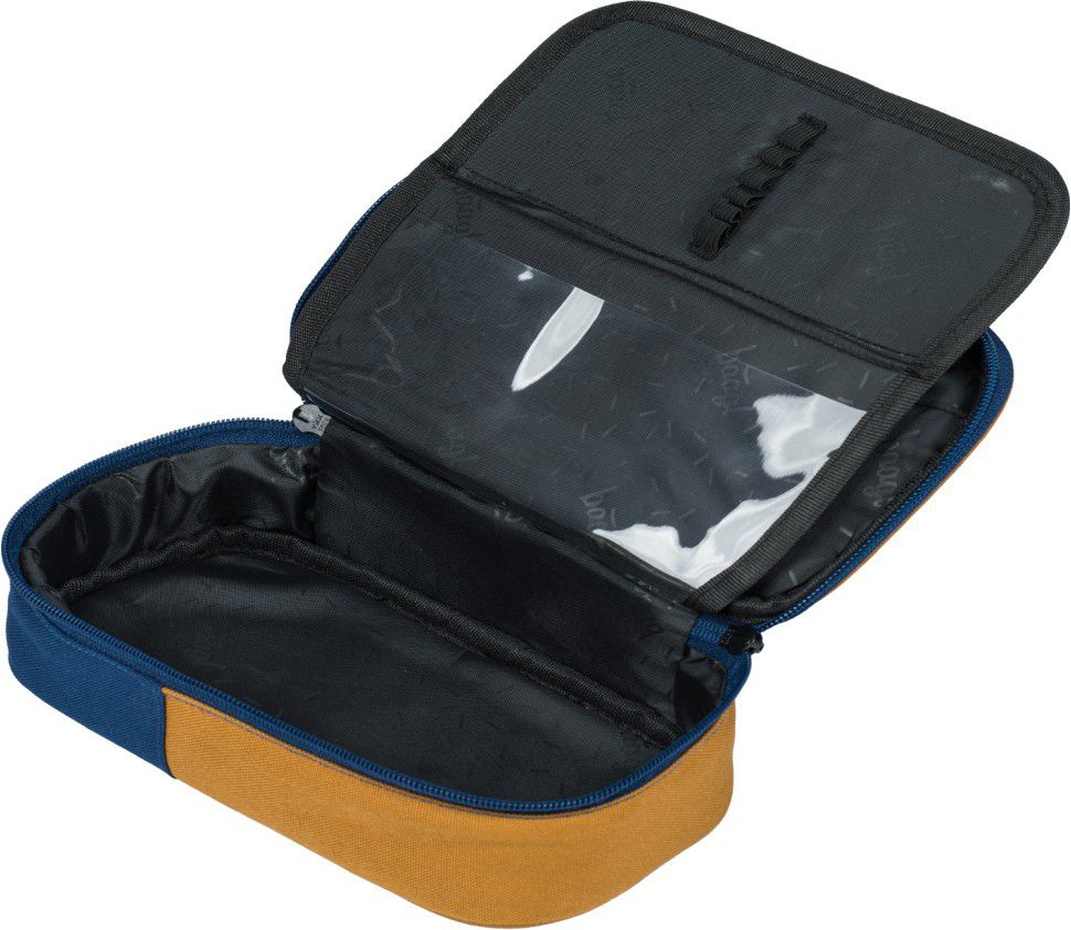 - Kompaktní penál na zip s prostornou hlavní komorou a dvojitou výklopnou chlopní nabízí dostatek prostoru pro psací potřeby i drobnosti.