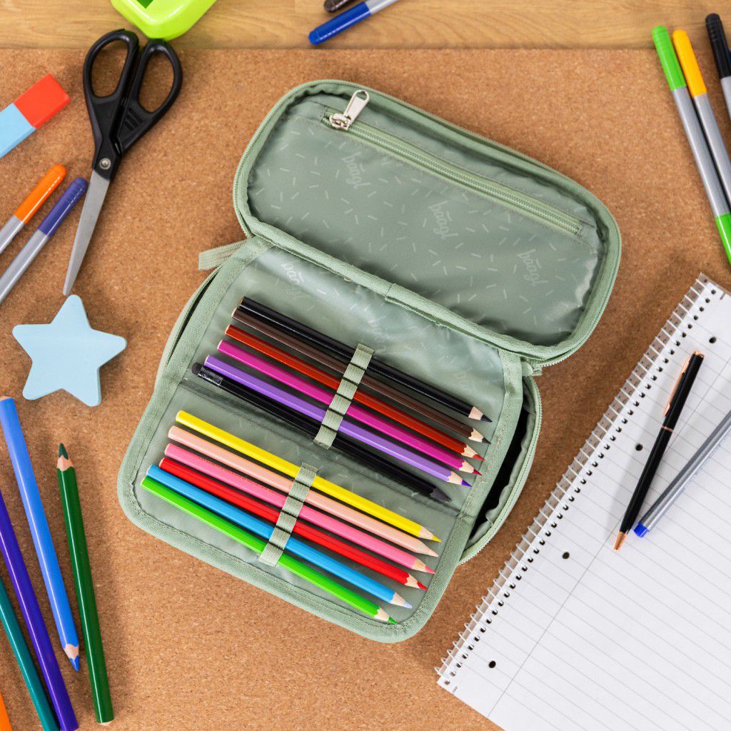 - Kompaktní penál na zip s prostornou hlavní komorou a dvojitou výklopnou chlopní nabízí dostatek prostoru pro psací potřeby i drobnosti.