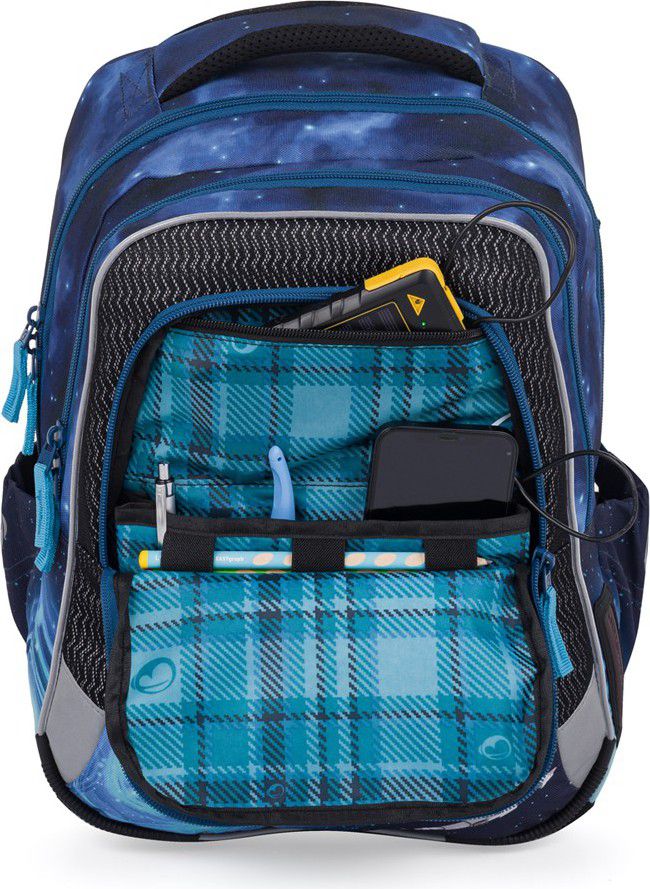 - Tříkomorový školní batoh pro malé astronauty od 1. do 3. třídy.