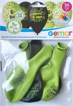 Kvalitní latexové jednobarevné narozeninové nafukovací balonky Gemar s potiskem ve stylu "Minecraft" (Happy B-Day).