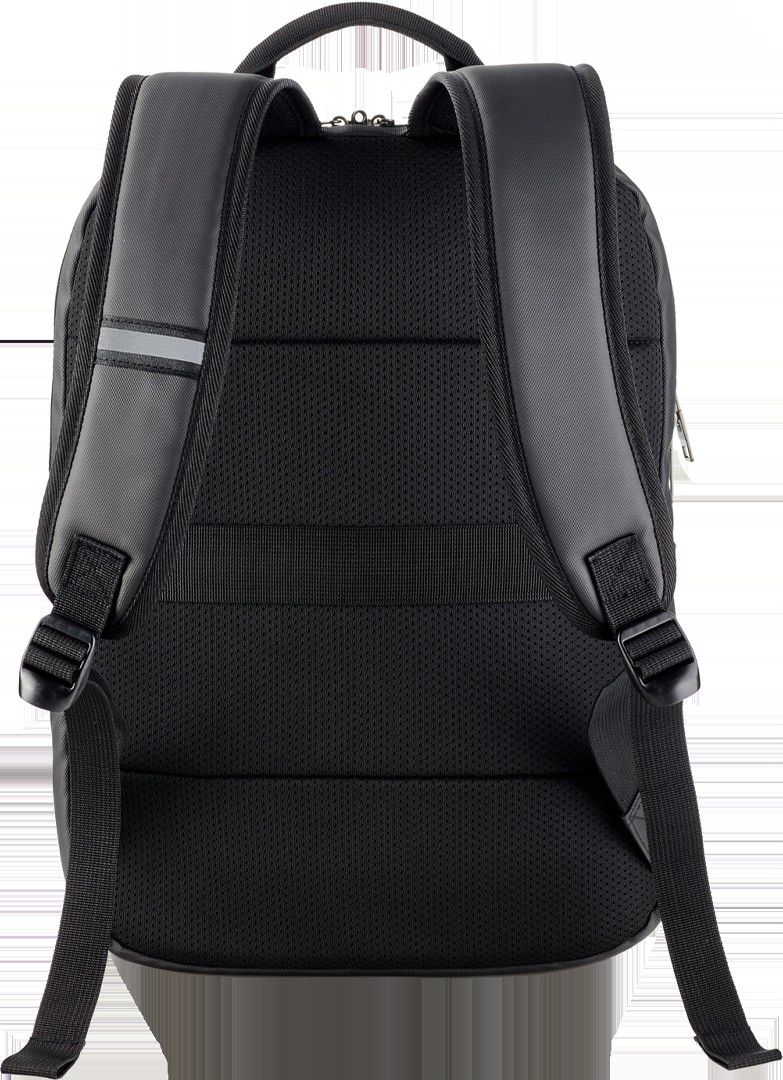 Polstrovaný batoh s kapsou a oddílem pro bezpečné uložení notebooku či tabletu. Druhá vnitřní kapsa je doplněna organizérem a menší kapsou s funkcí RFID, bránící odcizení dat z platební karty nebo mobilního telefonu. Vnější kapsa pro rychlé uschování drobností. Polstrované záda a ramenní popruhy pro komfortní nošení. Možnost připevnění k troleji kufru. Reflexní prvek na přední straně batohu. Robustní kovový zip s očkem pro uzamčení batohu zámkem. Kovové decentní logo.