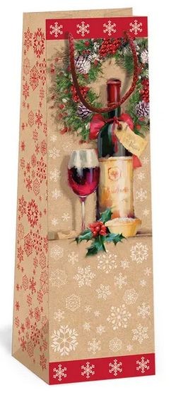 Vánoční papírová dárková taška NATUR s originálním designem na víno nebo šampaňské.